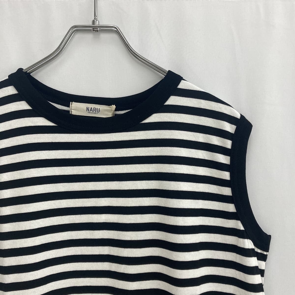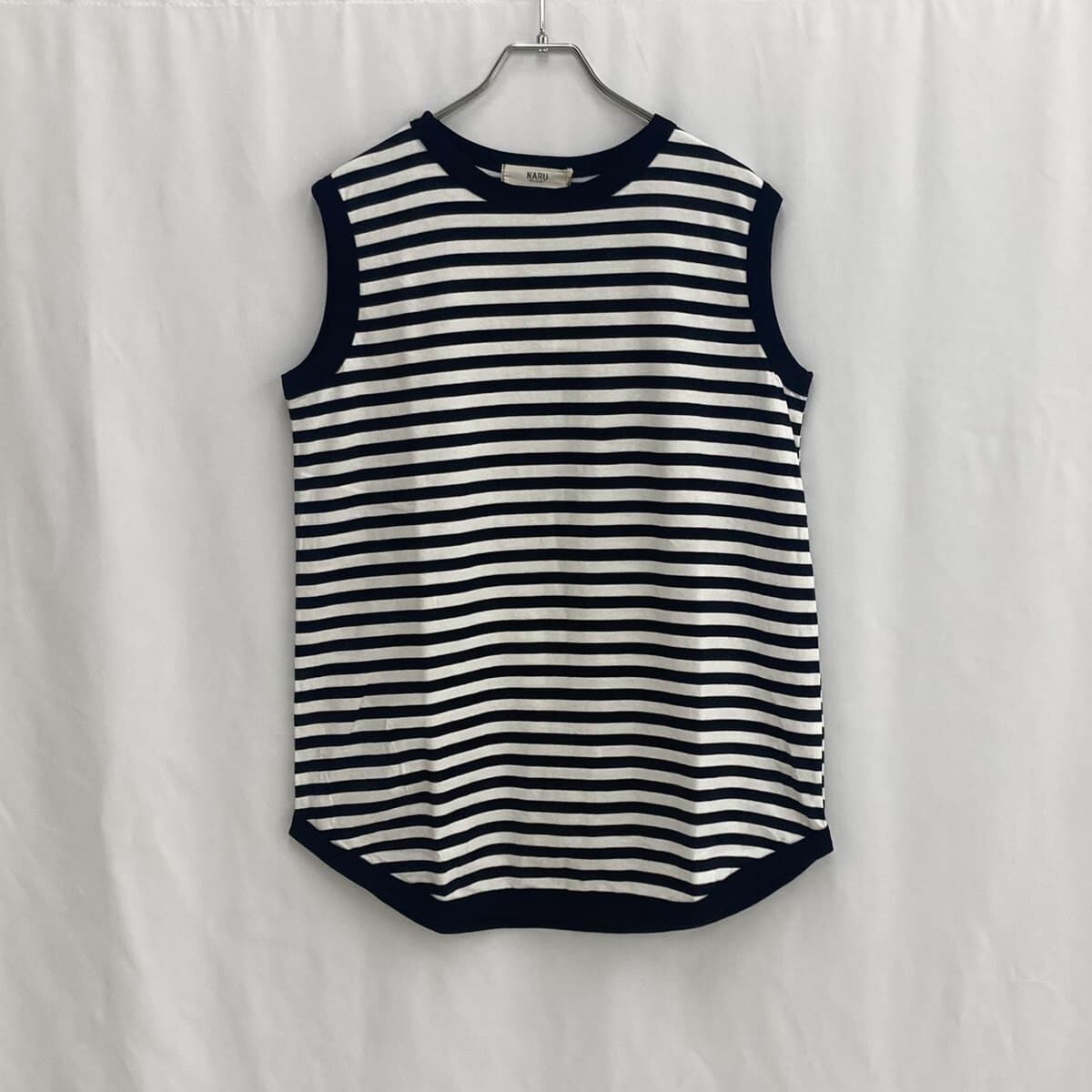 【NARU】40/2天竺ボーダー ラウンドタンクトップ [645316] ナル ナルファクトリー