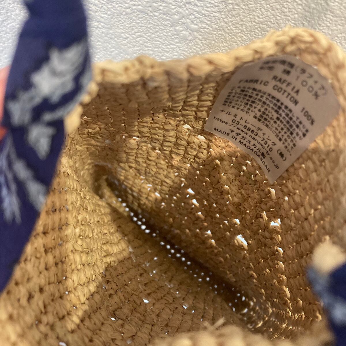 【素材】植物繊維(ラフィア)、別地コットン100%