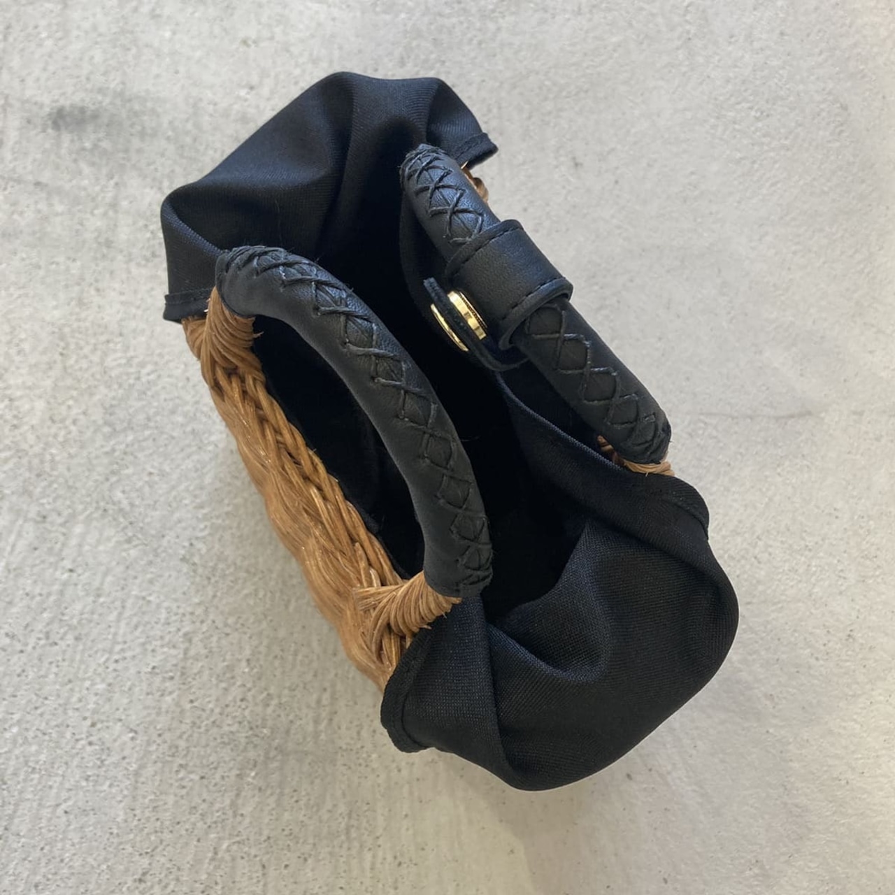 職人がひとつひとつ丁寧に編み込んだラタンのミニショルダーです。ハンドル部分の牛革とゴールドのパーツが上品な印象を与えてくれます。ショルダーストラップを外してハンドバッグとしてもお使いいただけます。バッグの口の部分を結んでいただくと可愛いです。