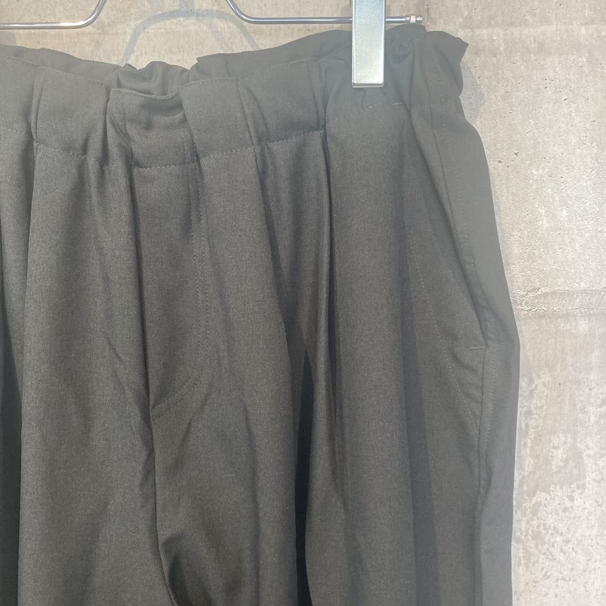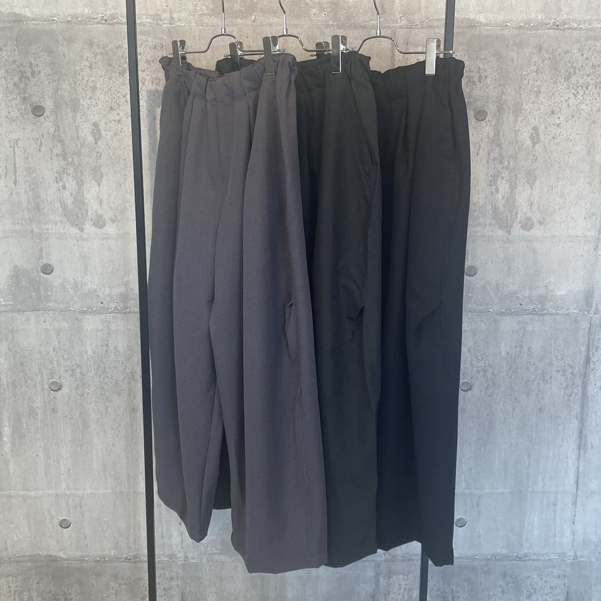 mizuiro ind で人気のワイドカーゴパンツです。膝にタックを施した立体感のあるシルエットがポイント。丸みのあるボリューム感でゆったりとしたスタイルが特徴です。柔らかでシワになりにくい2wayストレッチ素材です。ウエストの内側にはドローコード付きで調整して穿きやすい仕様。裏地なし。サイド・バックポケット付き。
