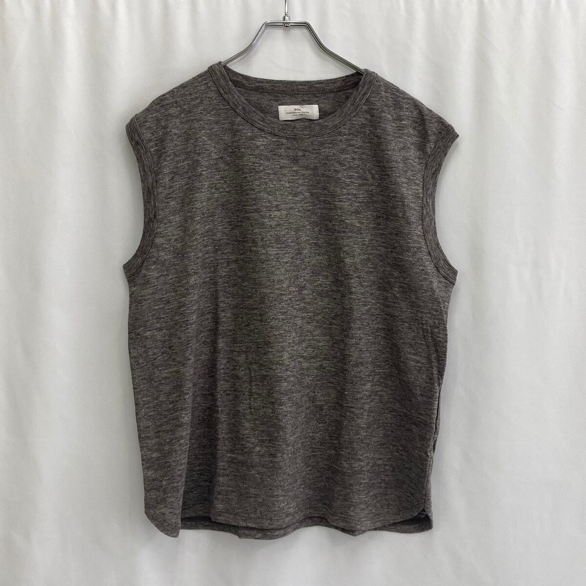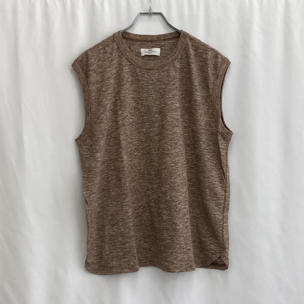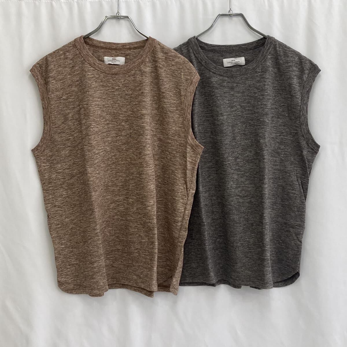 ムラ糸を使用して作られたスラブ生地は、ヴィンテージ感のある風合いが特徴です。また、薄手でサラッとした肌触りも魅力となっています。首周りと袖口には、伸びにくくヘタりにくいバインダーネック仕様。フレンチスリーブの袖や少しラウンドさせた裾が程よく抜け感があります。