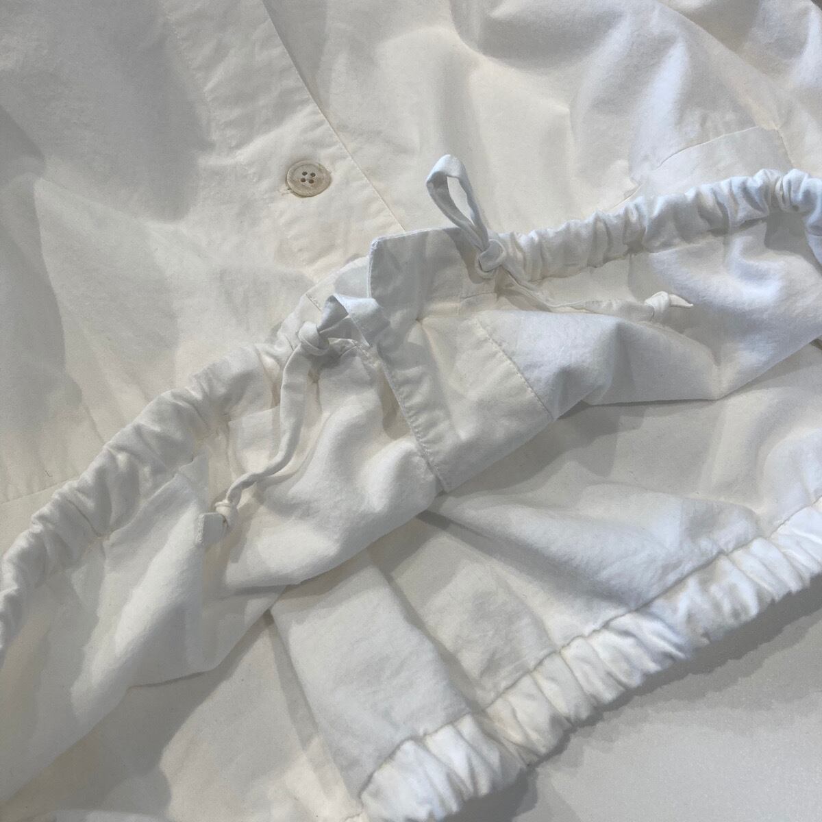 オーガニックのポプリン生地を使用した、100%コットンの裏地付きのジャケットです。ラグランスリーブでショルダーラインを気にせず、ゆったりとしたシルエットで着心地の良さが魅力です。フロントには大きめなボタンを使用し、シンプルなデザインの中にちょっとしたアクセントを忍ばせました。裾部分にはドローコードが付いていますので、クシュッとさせて表情の変化も楽しんでいただけます。