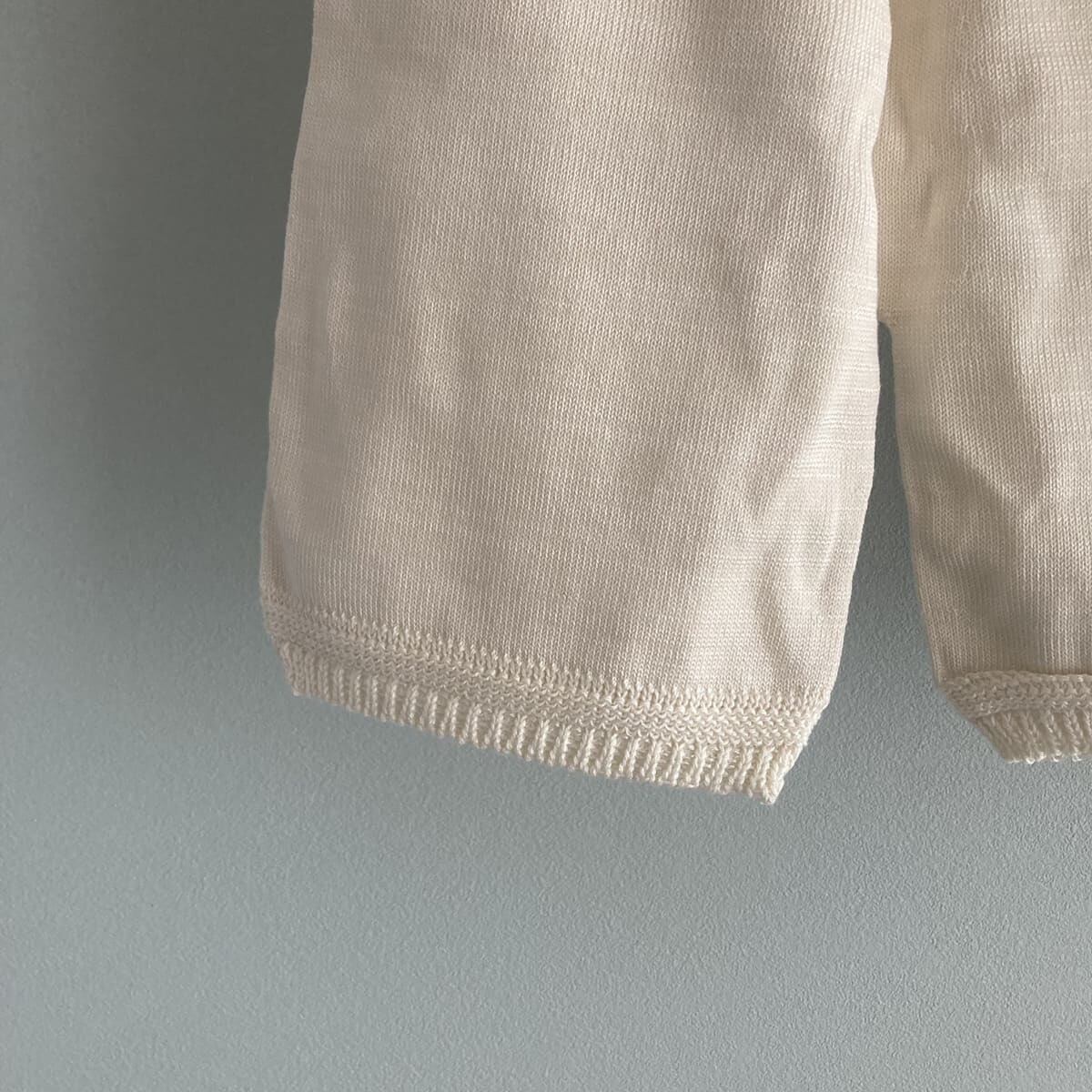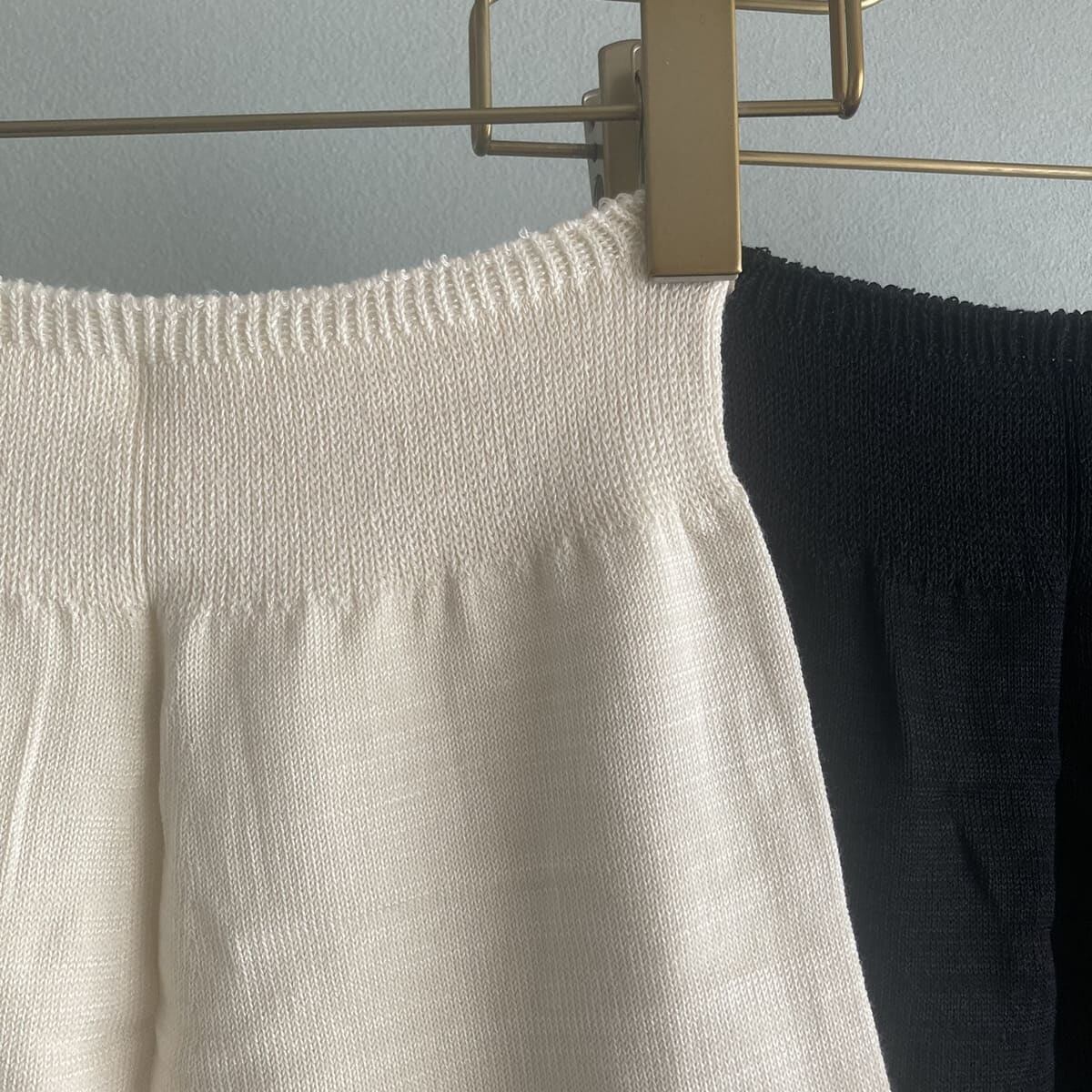 綿シルク素材が心地よいホールガーメントのオーバーパンツです。無縫製なので縫い目のごろつきがなく優しい肌触りです。ウエスト部分は細いゴムを入れて編み立て伸びよく仕上げ、太もも周りは締め付け感なく履いていただけます。スカートやワンピースの透け対策、冷え対策にも活躍します。