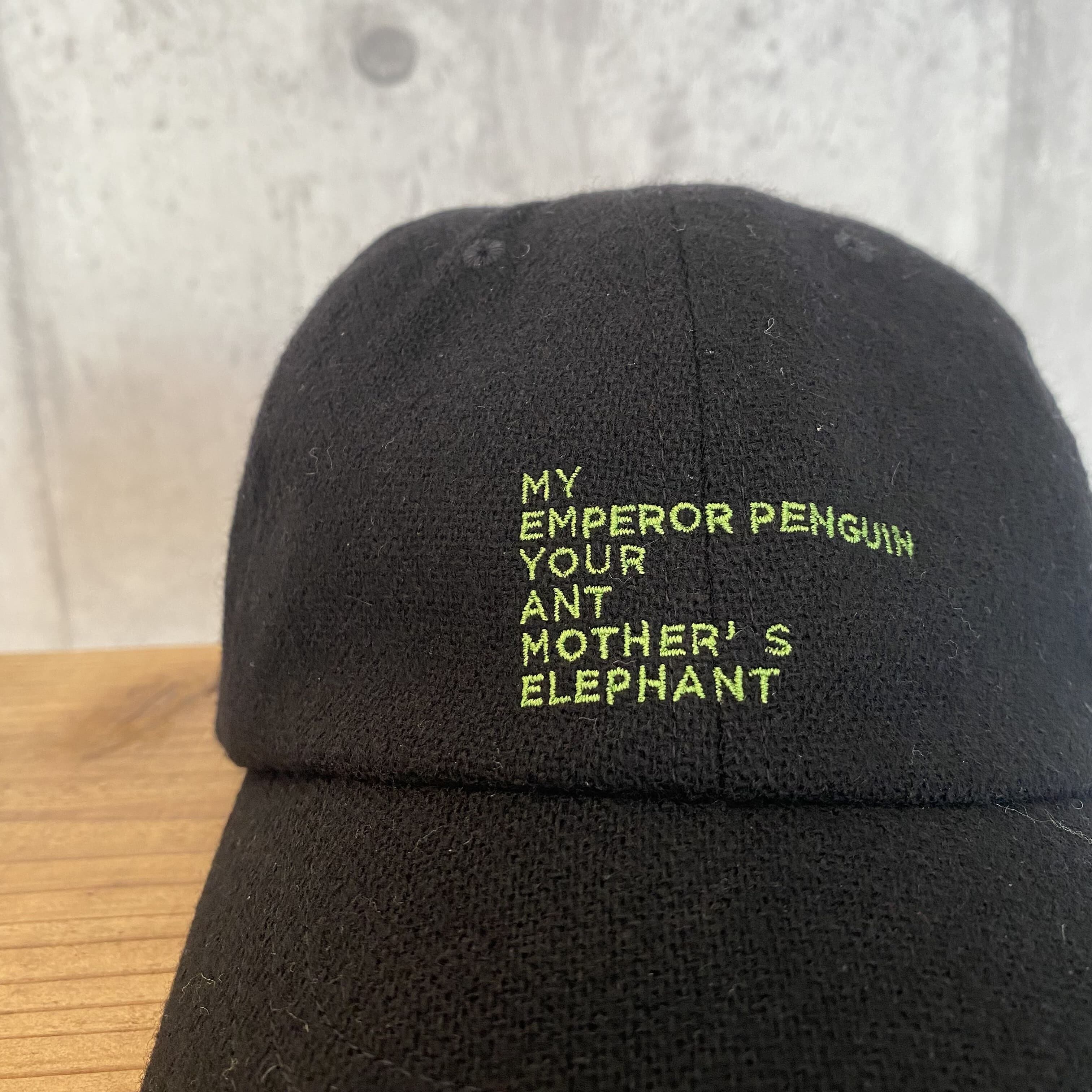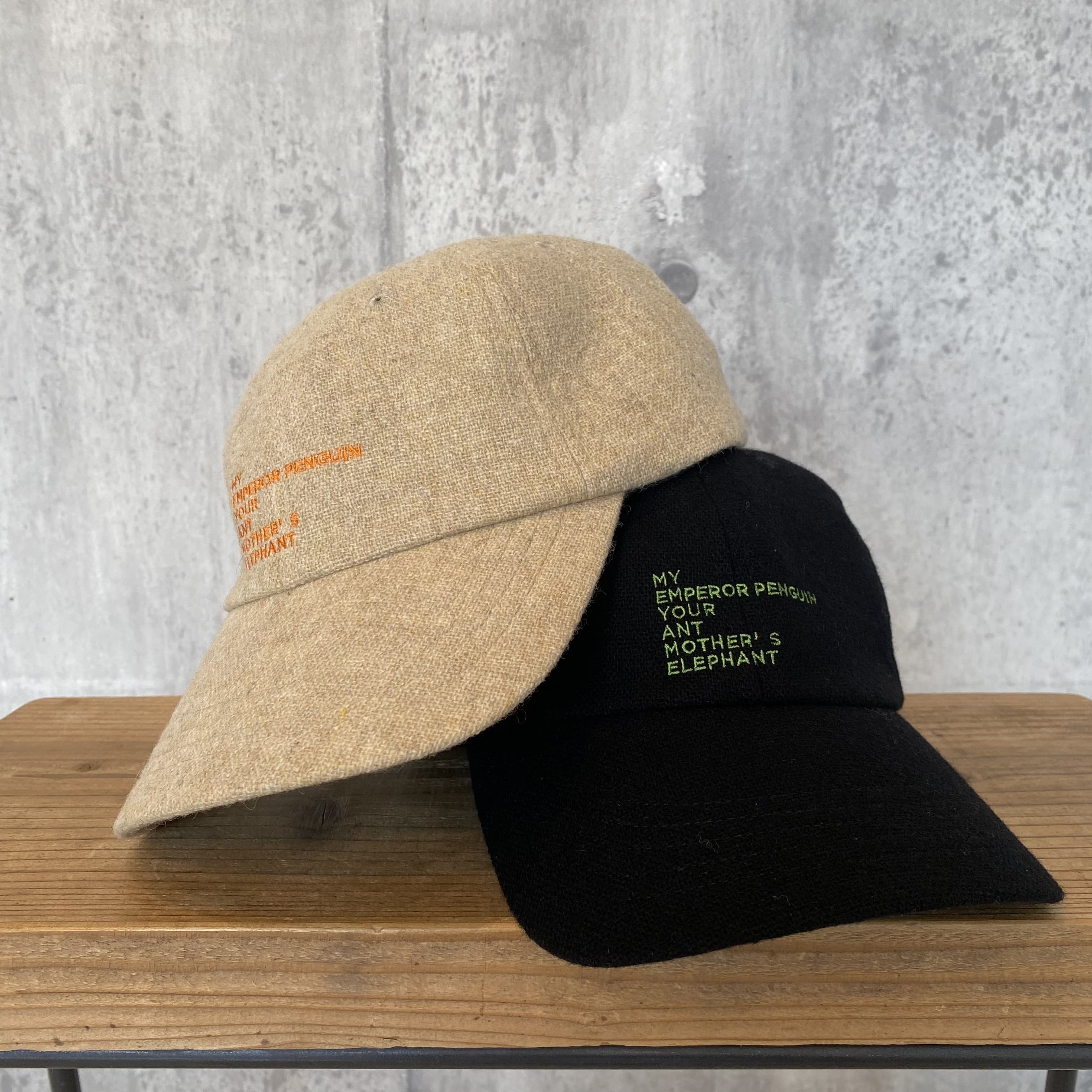 ベーシックにかぶれるカラー&シルエットに、配色の刺繍がポイントの秋冬素材のキャップです。フロントの刺繍は動物関連のワードが並べられており、それぞれの文字を縦読みすると、「MEYAME」とブランドの名前になっており、遊び心のあるアイテムです!裏地は生地が張られており、秋冬の気温にも対応できる機能的な仕様。いつものスタイリングのプラスワンアイテムとしておすすめです。