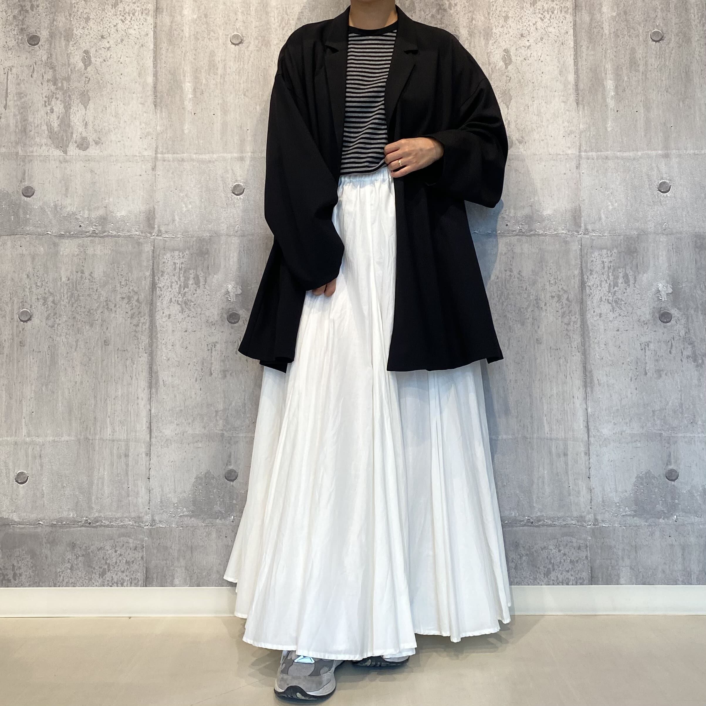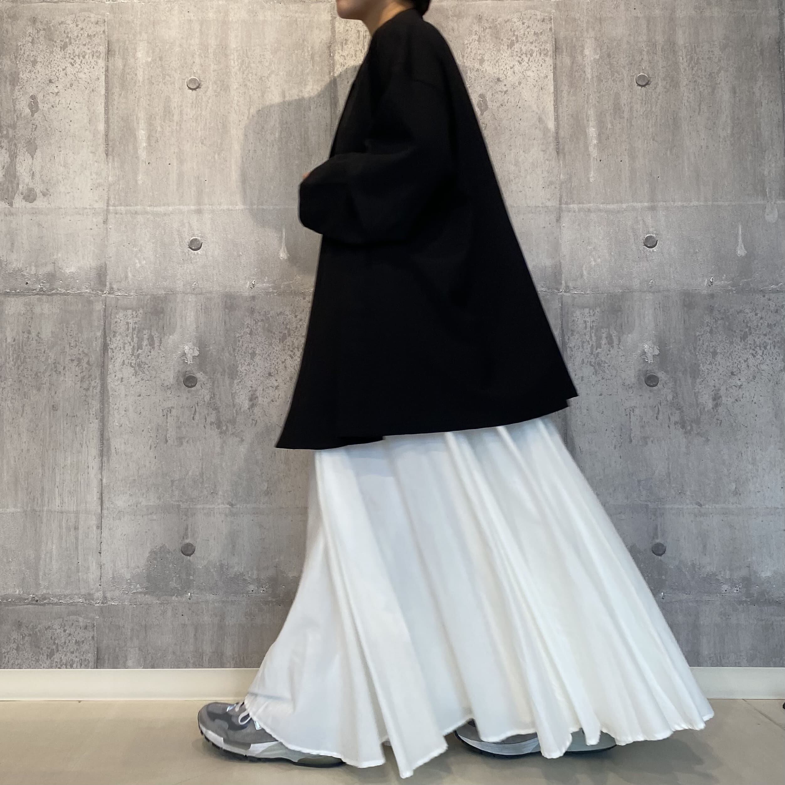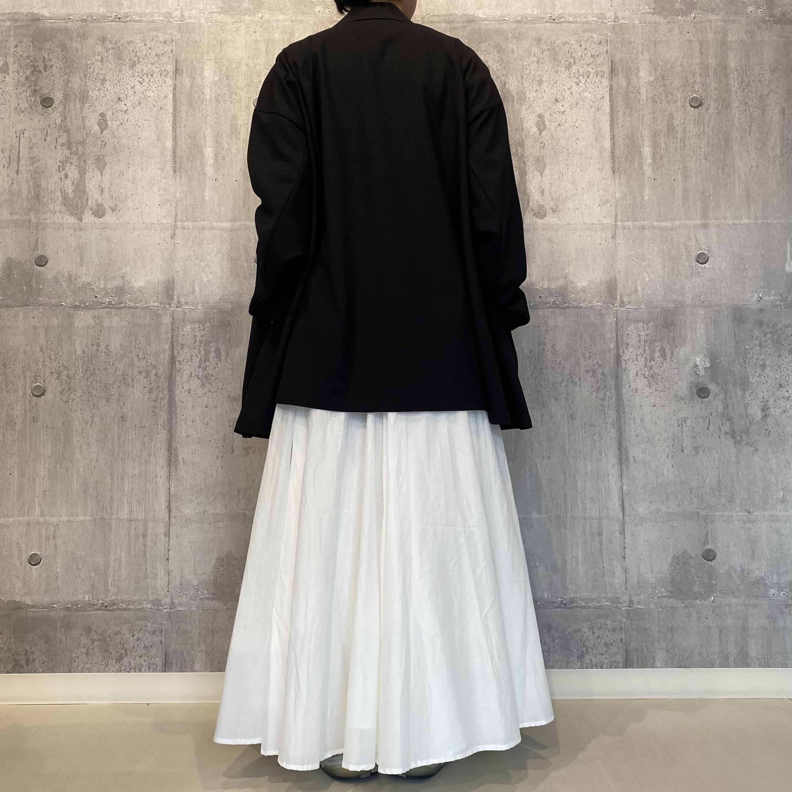 ボタンレスですっきりとしたモード感のあるテーラードジャケットです。シャツ感覚で軽やかに羽織っていただけます。上品に広がるフレアラインが特徴的で、しなやかに流れるシルエットを演出します。シワになりにくい合繊素材を使用しており、肌馴染みがよく上品な光沢と落ち感が魅力です。ウールライクな質感で、秋冬のスタイリングに幅広く活躍します。オケージョンシーンでもお使いいただける上品さを備え、日常から特別なシーンまで、様々なコーディネートで活躍する一着です。裏地なし。