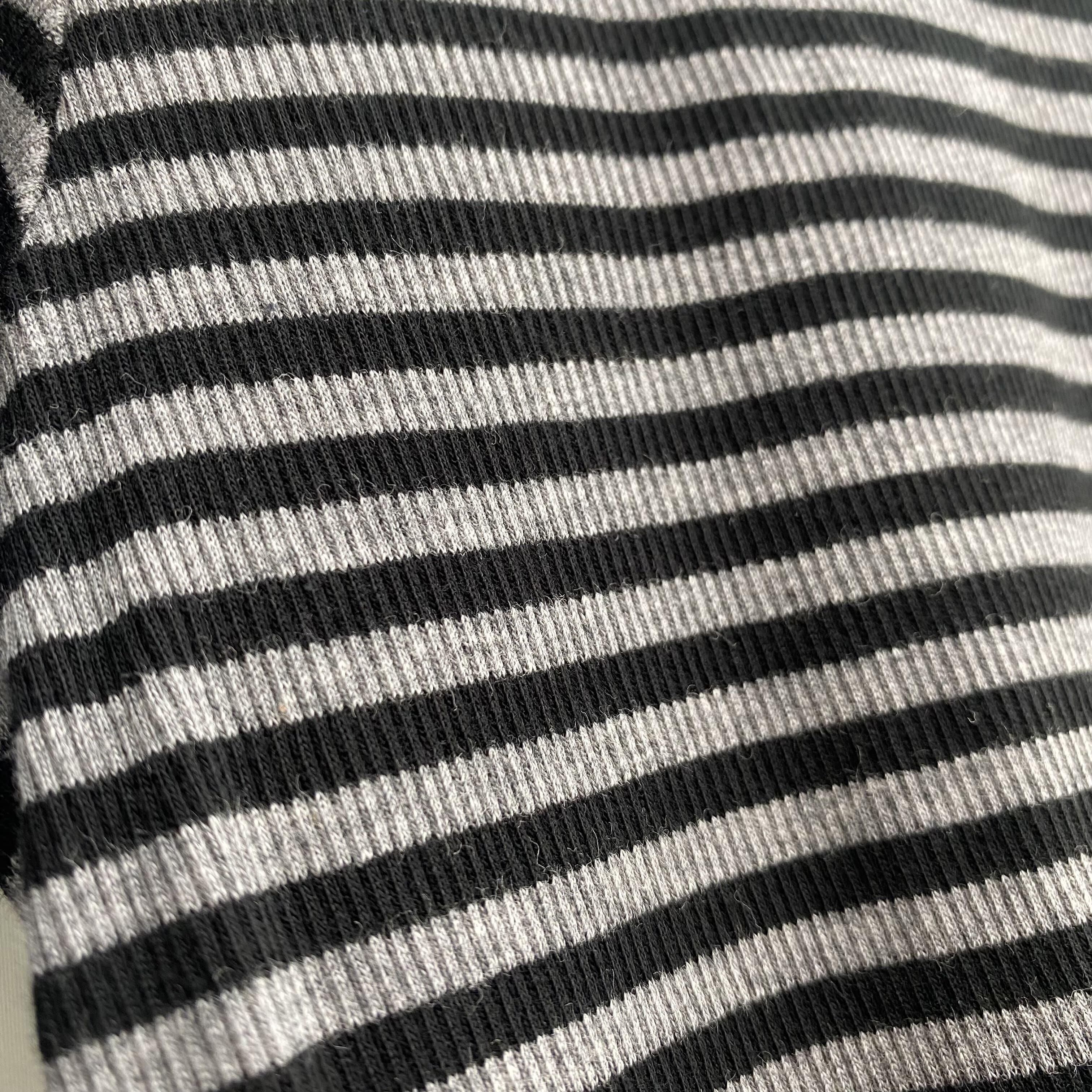 ソフトな肌触りの細ボーダーのコットンテレコ生地を使用したカットソーです。