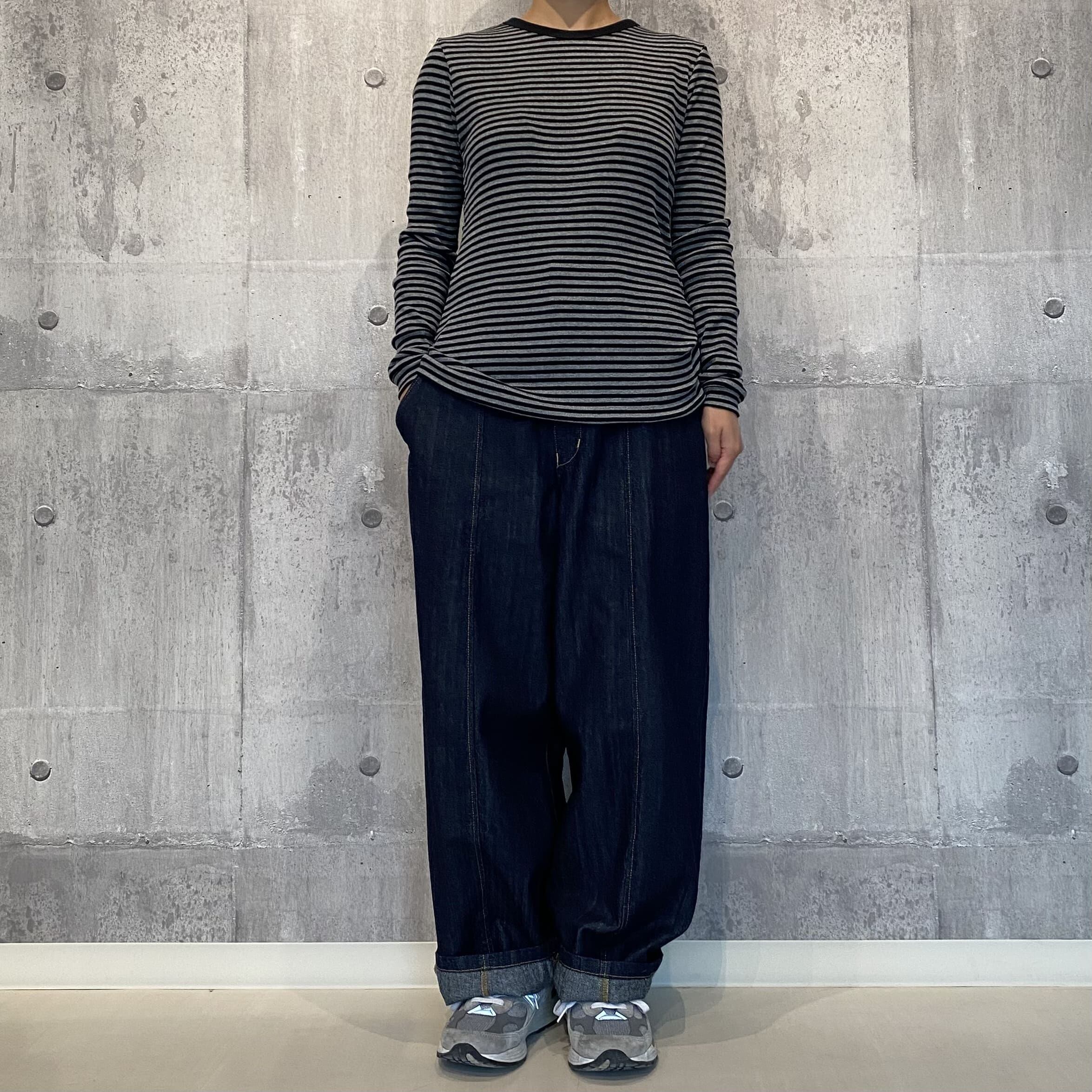 程よい厚みですっきりとした着用感なので、カーディガンやジャケットのインナーとしても活躍します。袖や裾からチラッとボーダー柄を覗かせたコーデもおすすめです。(画像モデル身長:150cm)