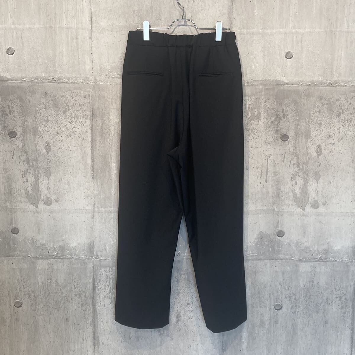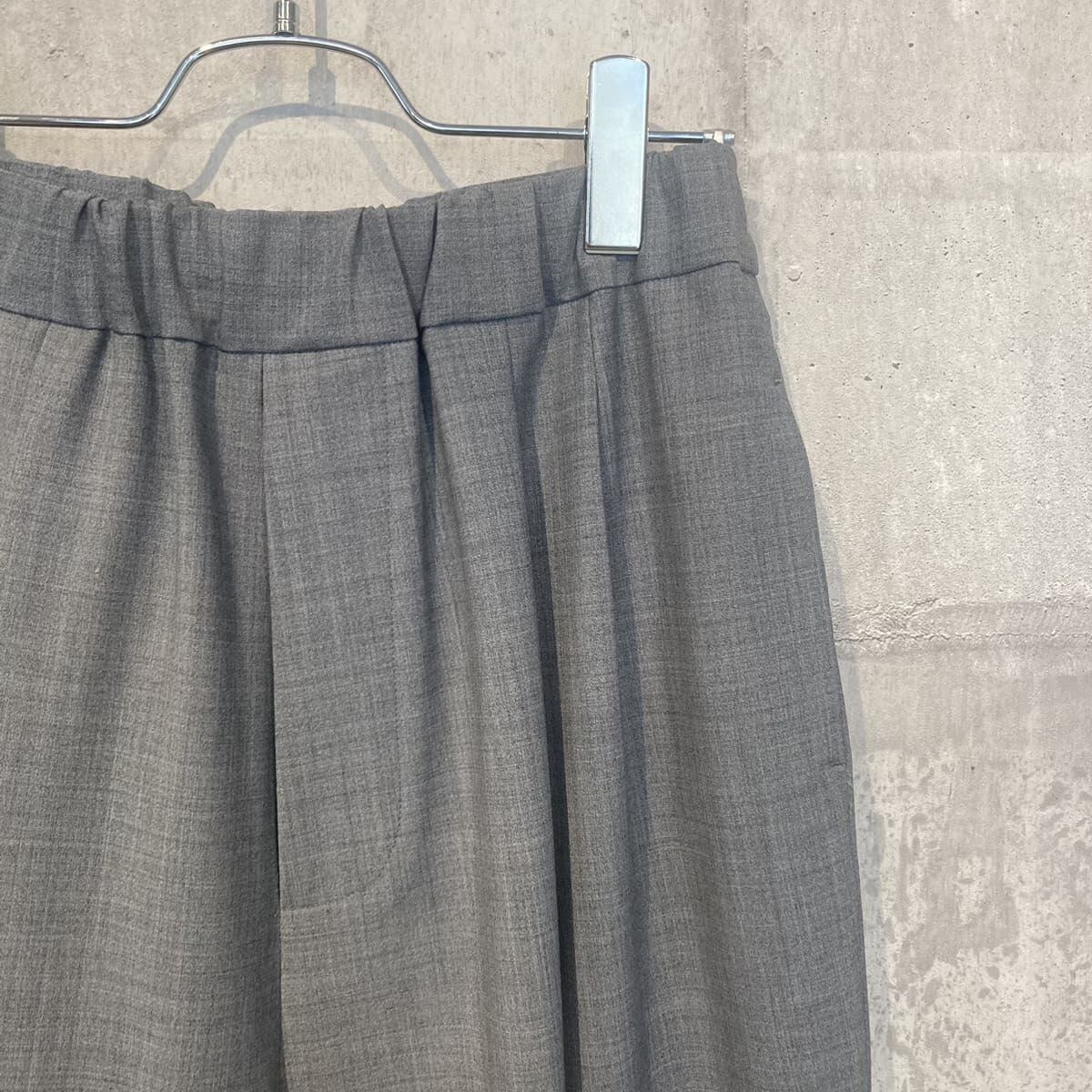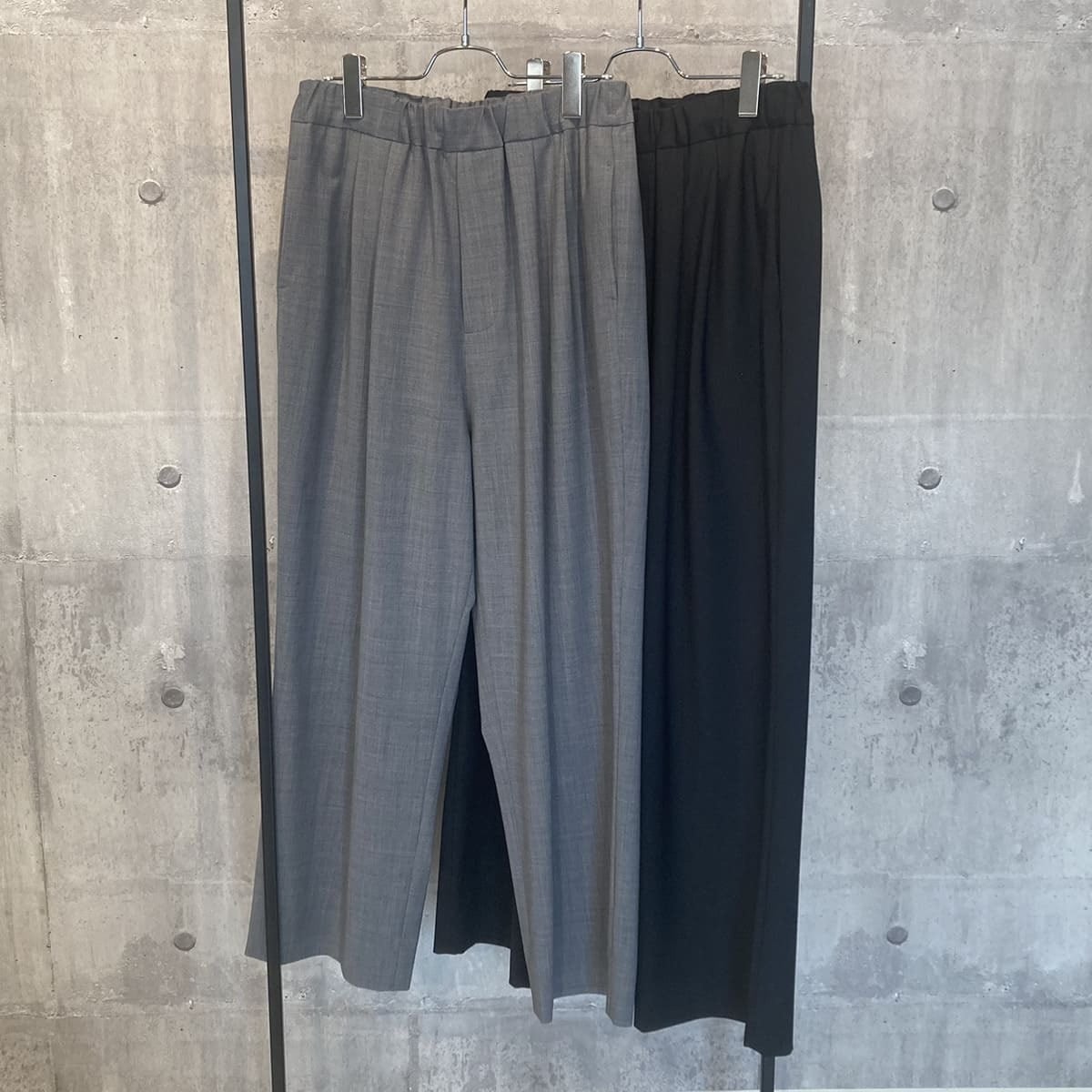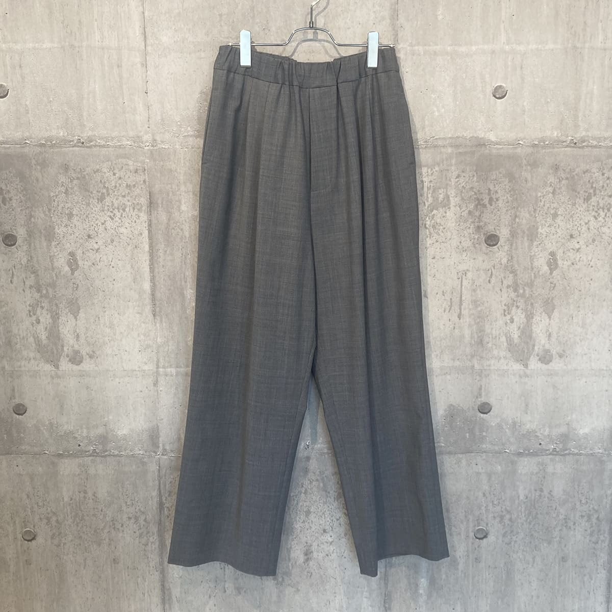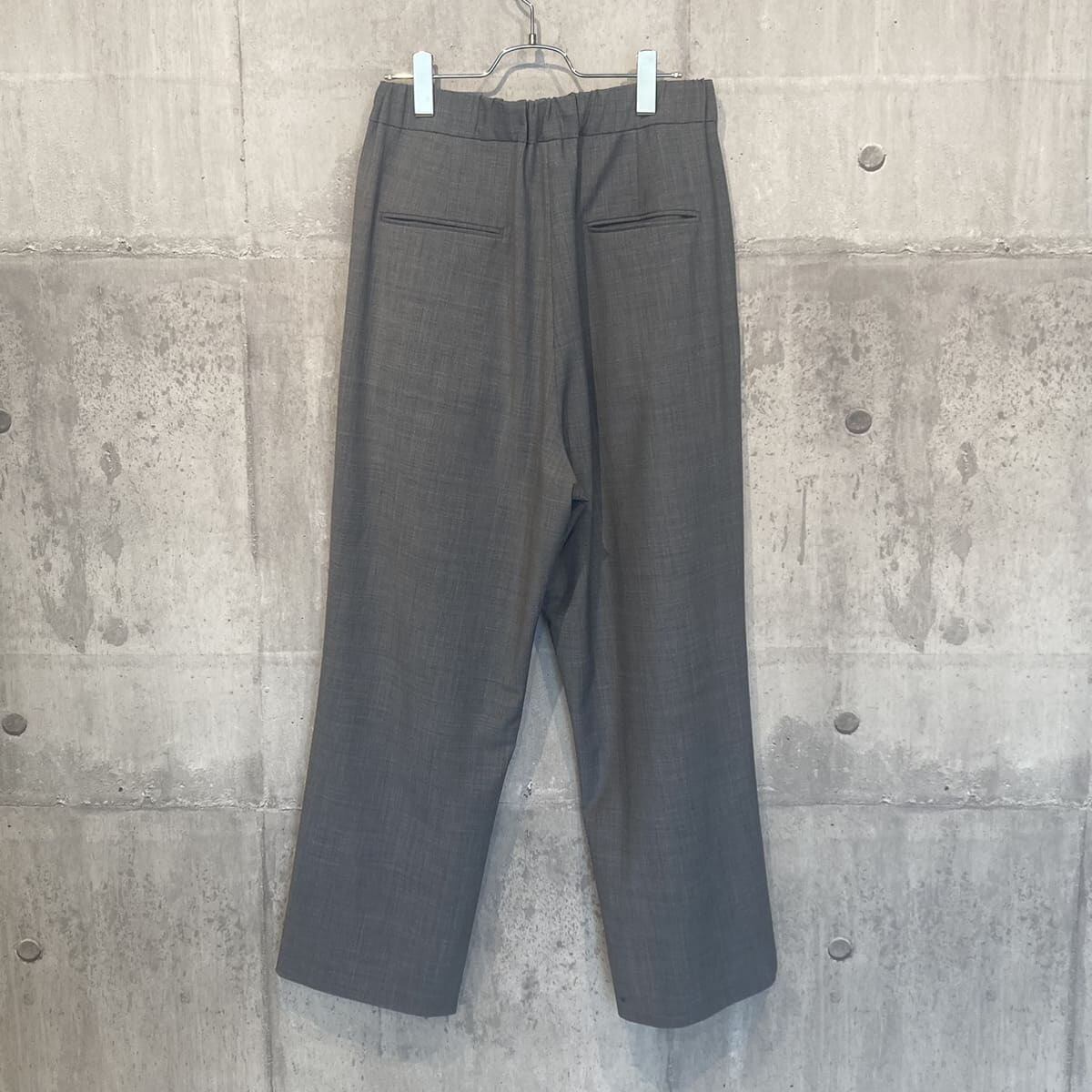 品のある素材感とリラックスした着心地をかなえるツータックのイージーパンツ。適度にゆとりを持たせたヒップから、裾に向かって真っすぐに落ちるストレートシルエットです。ウエストはゴム+紐によるイージースタイルです。オーストラリア産のメリノウールとリサイクルポリエステルを使用したトロピカル素材です。軽くストレッチの効いた素材で、上品な雰囲気でありながらもしわになりにくくデイリーに着用できるのも魅力です。(画像モデル身長150cm)