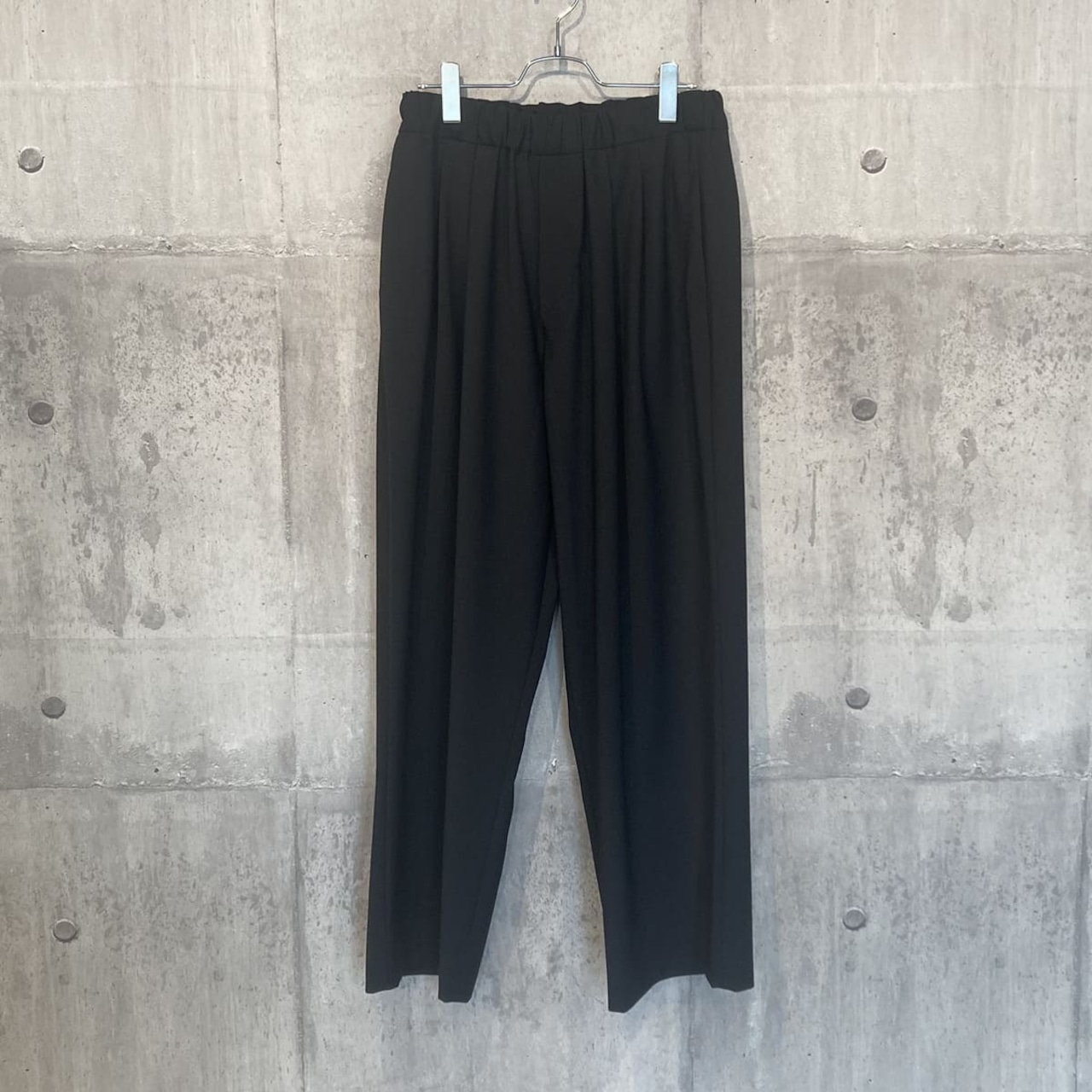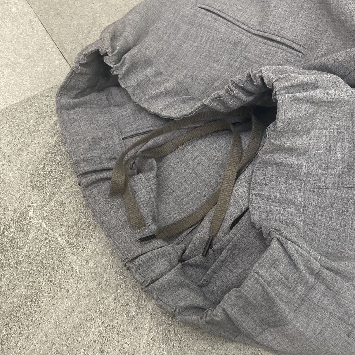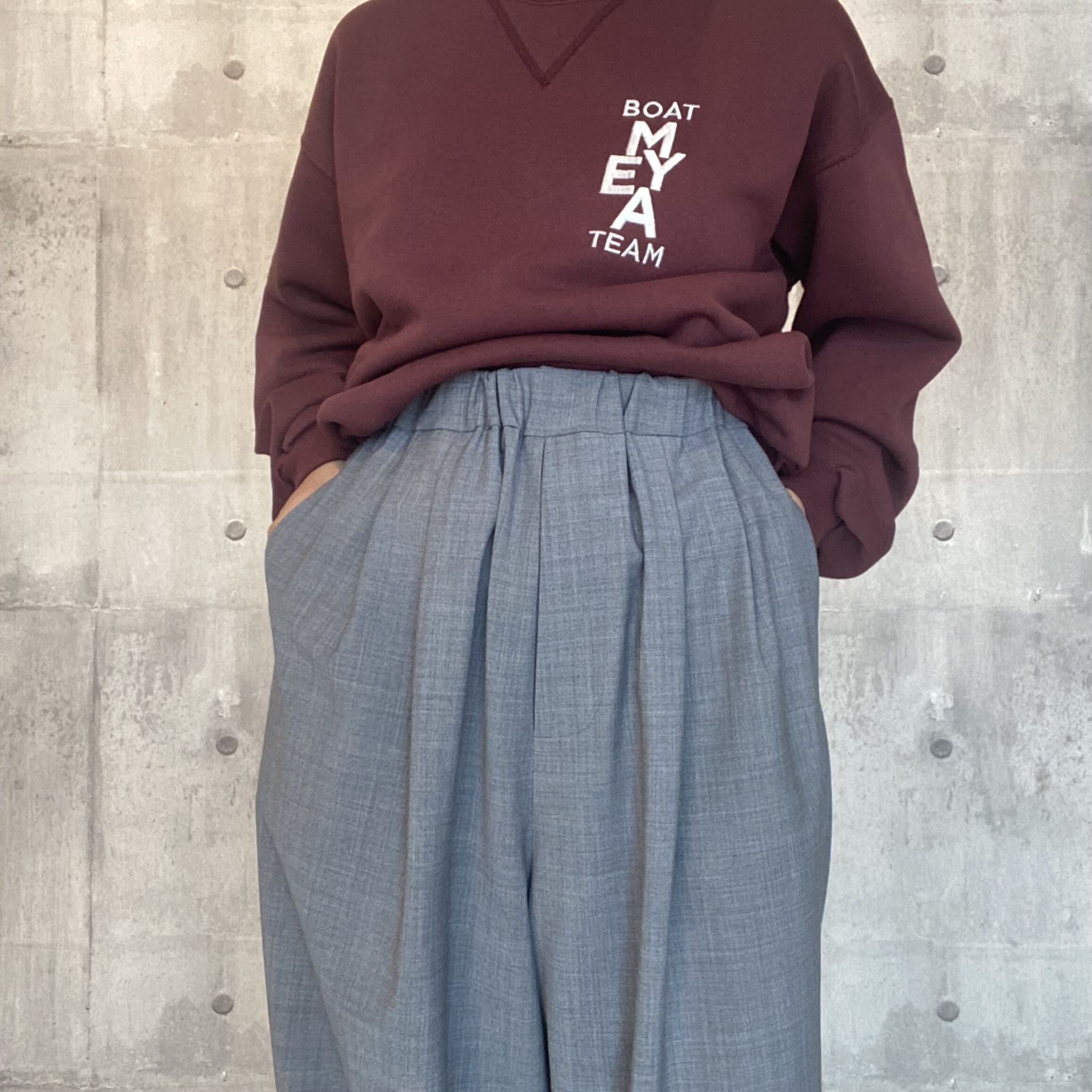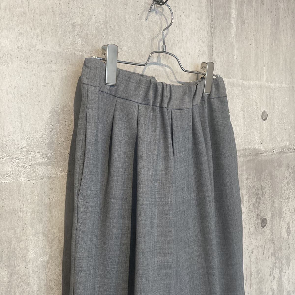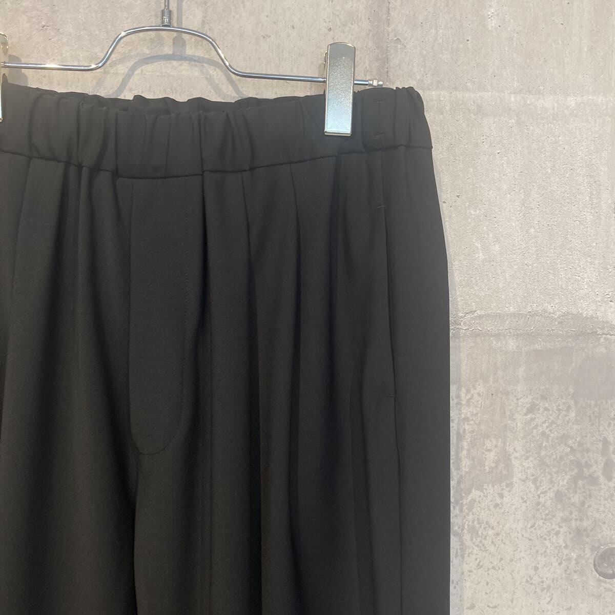 品のある素材感とリラックスした着心地をかなえるツータックのイージーパンツ。適度にゆとりを持たせたヒップから、裾に向かって真っすぐに落ちるストレートシルエットです。ウエストはゴム+紐によるイージースタイルです。オーストラリア産のメリノウールとリサイクルポリエステルを使用したトロピカル素材です。軽くストレッチの効いた素材で、上品な雰囲気でありながらもしわになりにくくデイリーに着用できるのも魅力です。(画像モデル身長150cm)
