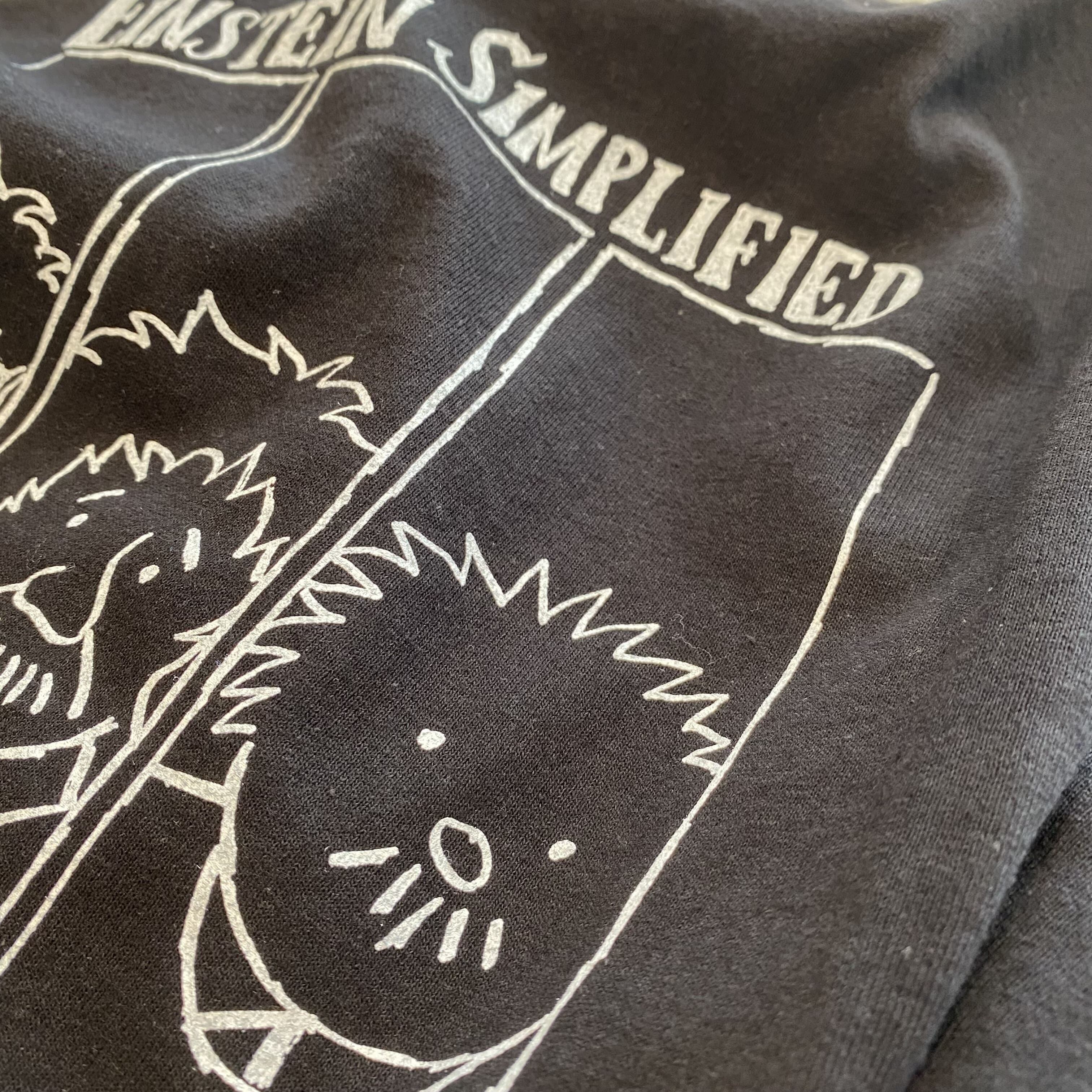こちらのTシャツは、アメリカを代表する科学漫画家シドニー・ハリスの漫画からインスパイアされたアインシュタインのイラストが描かれています。相対性理論や大統一理論に興味がある方にぴったりのデザインで、科学の世界をもっと身近に感じられます。
