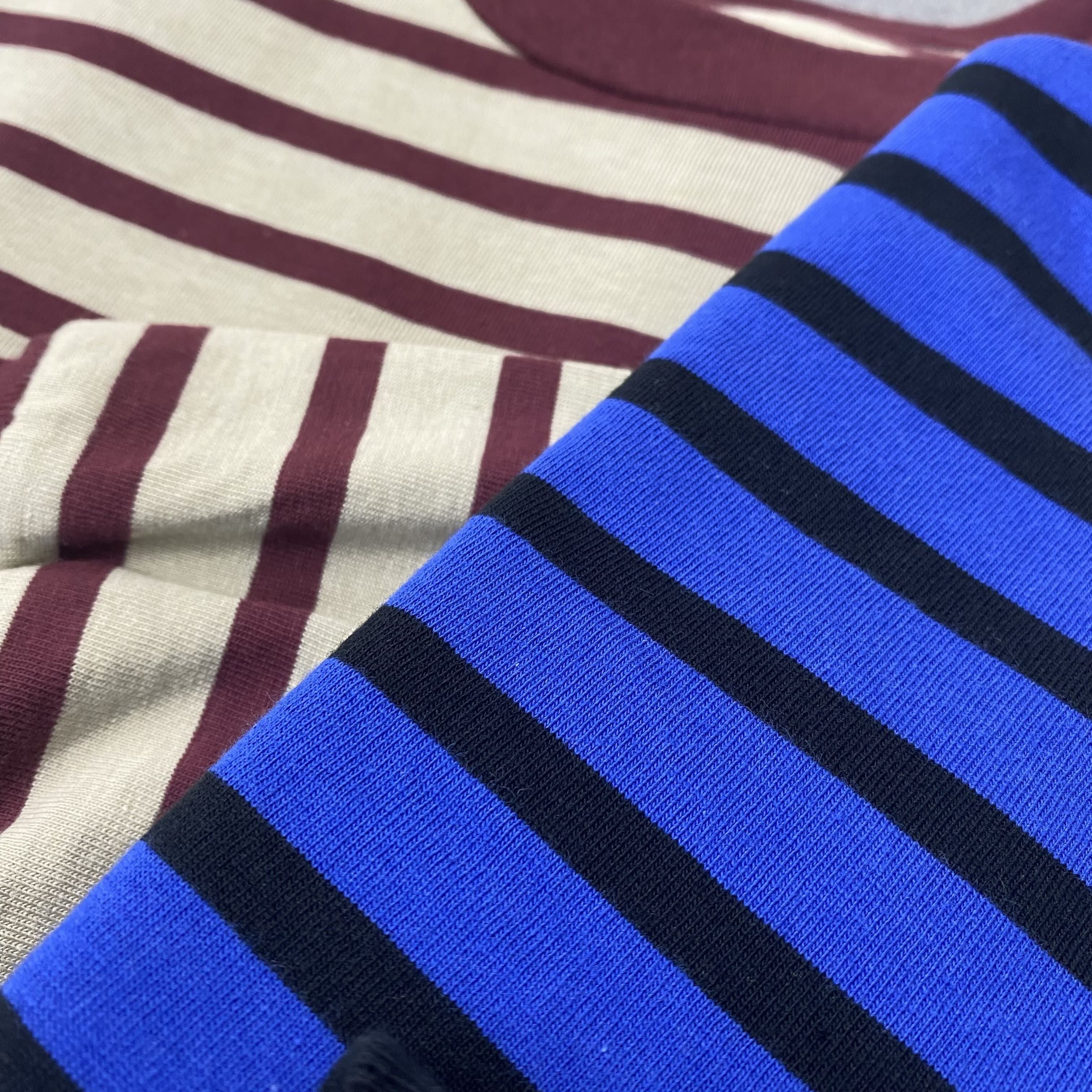 0.8cm×1.5cmピッチの秋冬を感じる配色ボーダー生地に、1枚でも様になる肉感とインナーとしても重宝するサイズ感にこだわって作られたアイテムです。