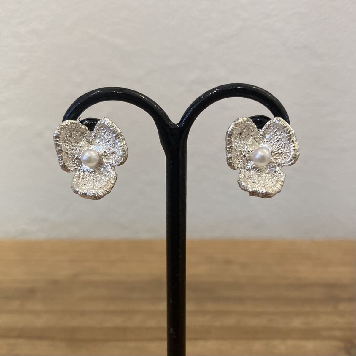 ・・菫がモチーフの上質なハンドメイドシルバーイヤリング・・