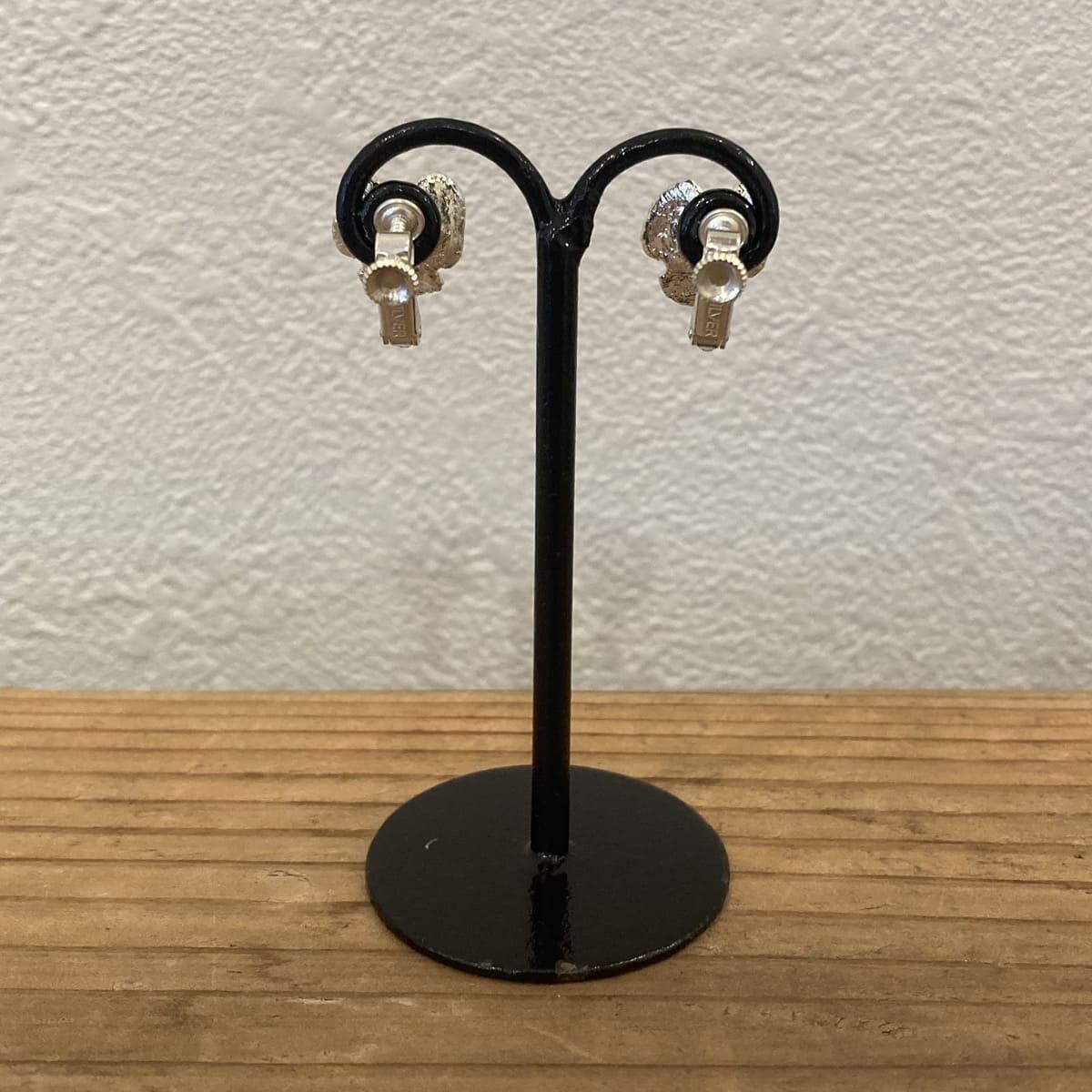 手編みレースから型どった自然な形が、菫の花をイメ ージしています。糸目のテクスチャーで陰影を作り、ナチュラルに見えるように仕上げられたイヤリングです。