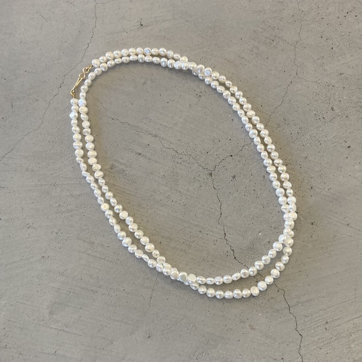 粉雪のようにきらめく淡水パールが繊細で美しい、パールロングネックレス。