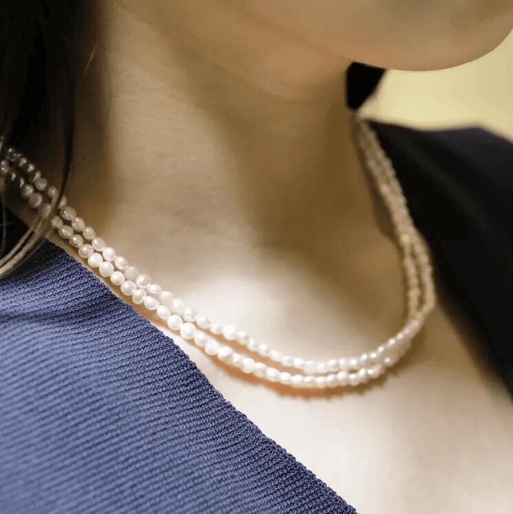 ・・粉雪のようにきらめく淡水パールが美しい、パールネックレス・・