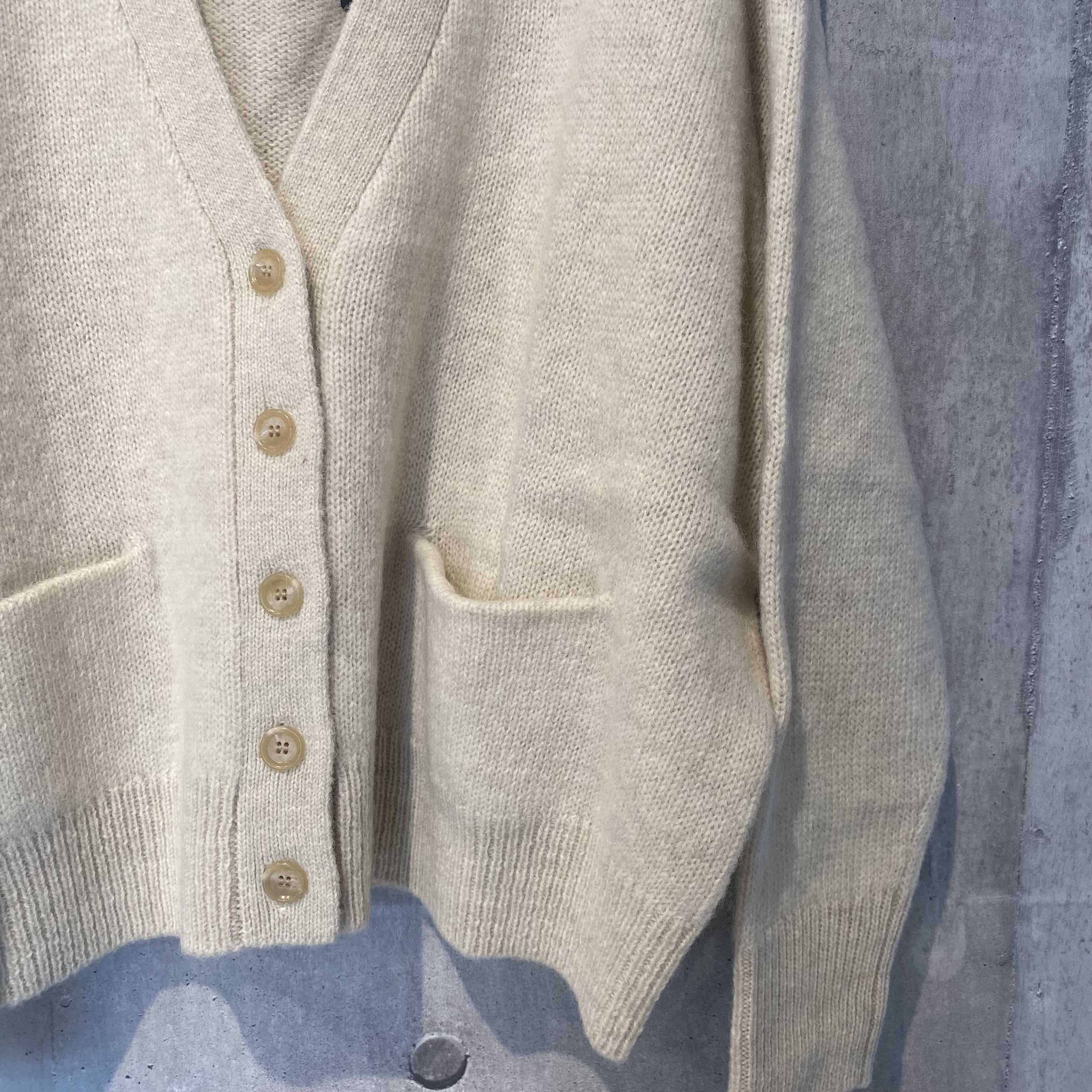 シェットランドウールのようなふっくらとした生地感が特徴のMG/Vネックワイドカーディガンです。