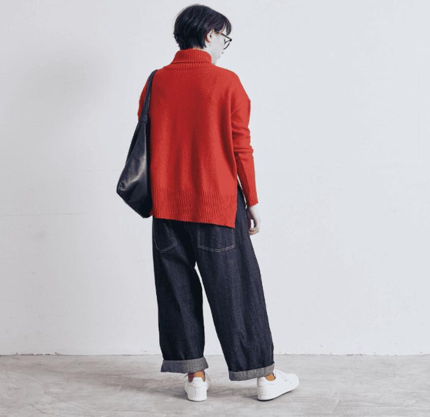 手首と裾の太幅のリブがスタイルアップしてくれます。