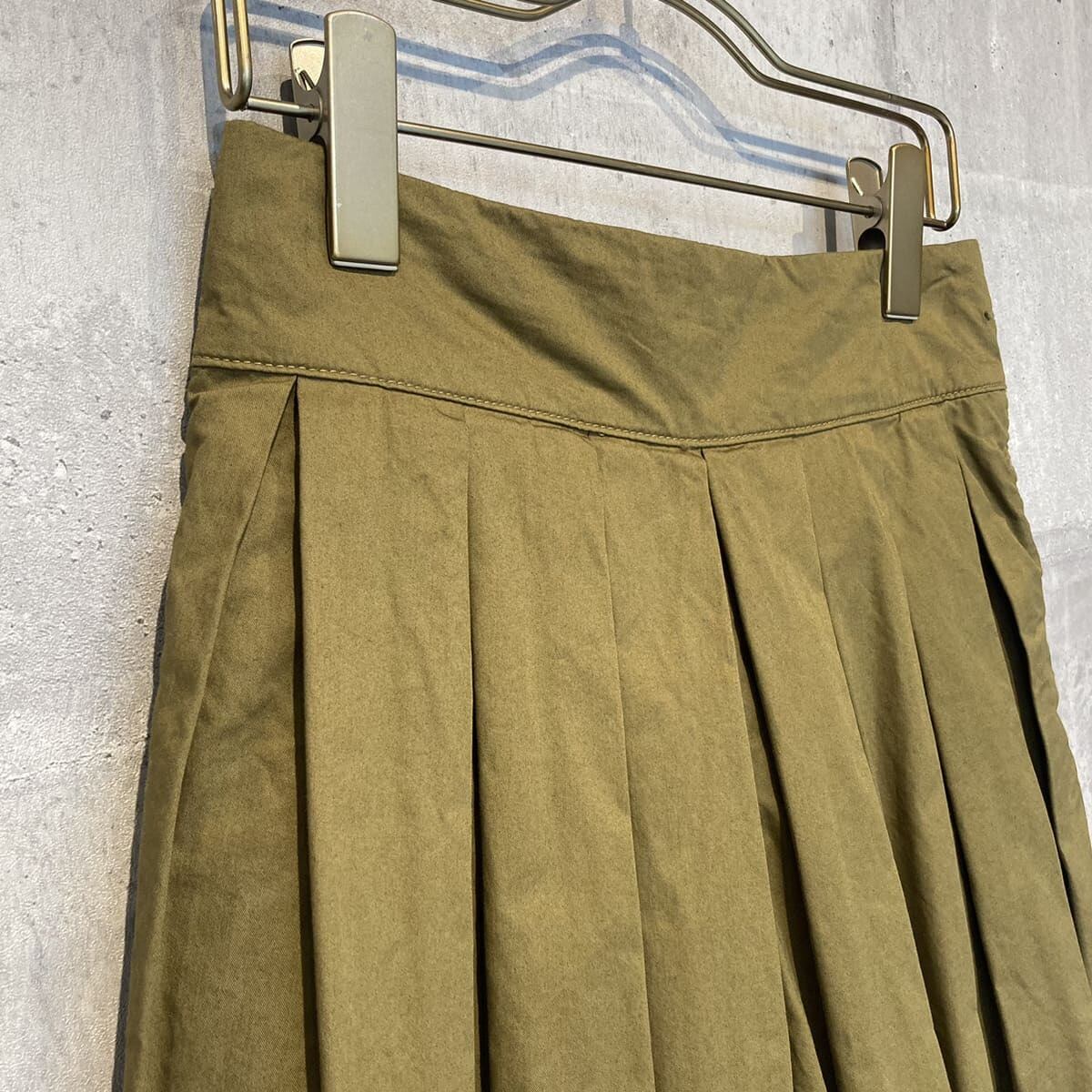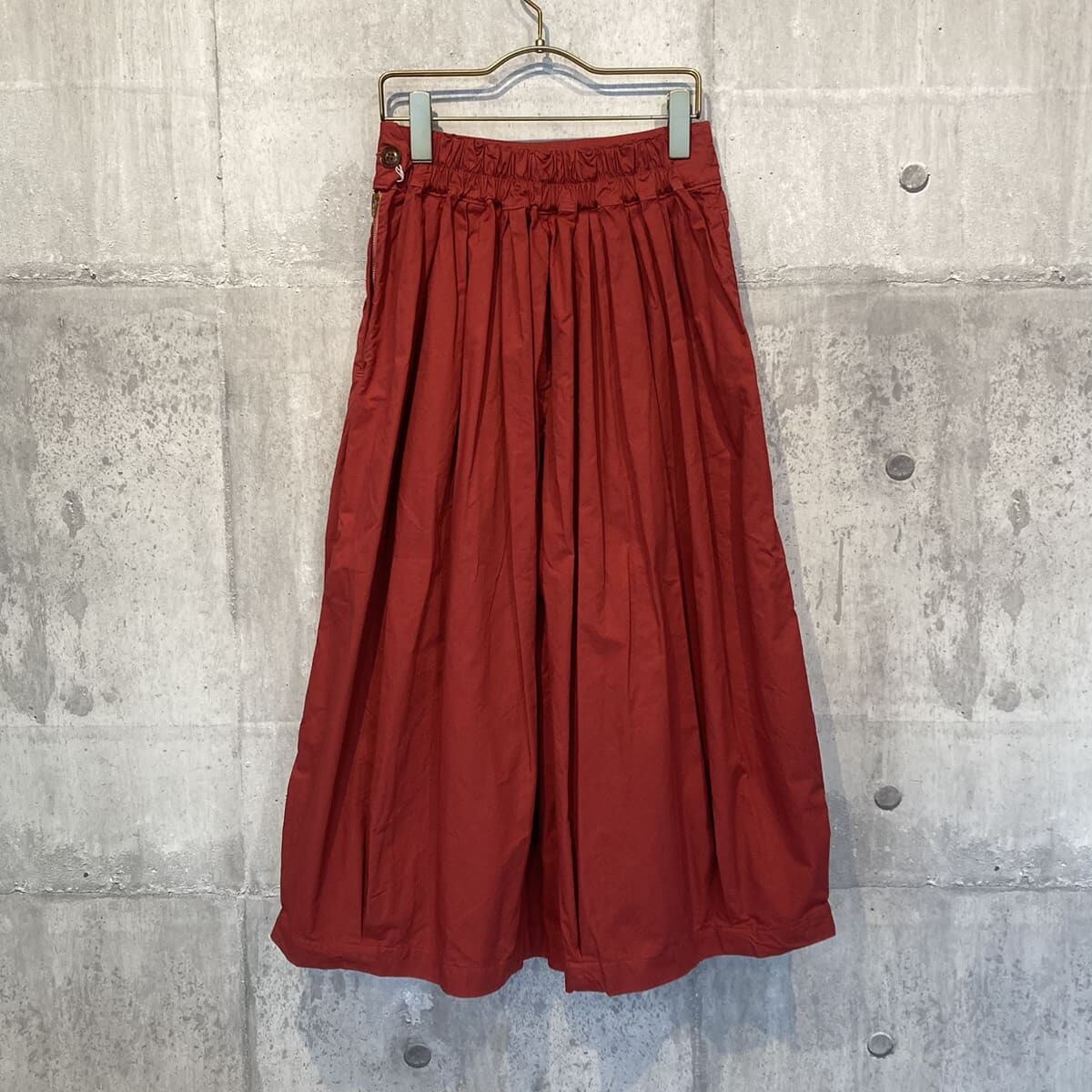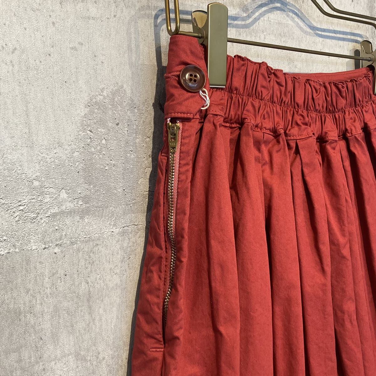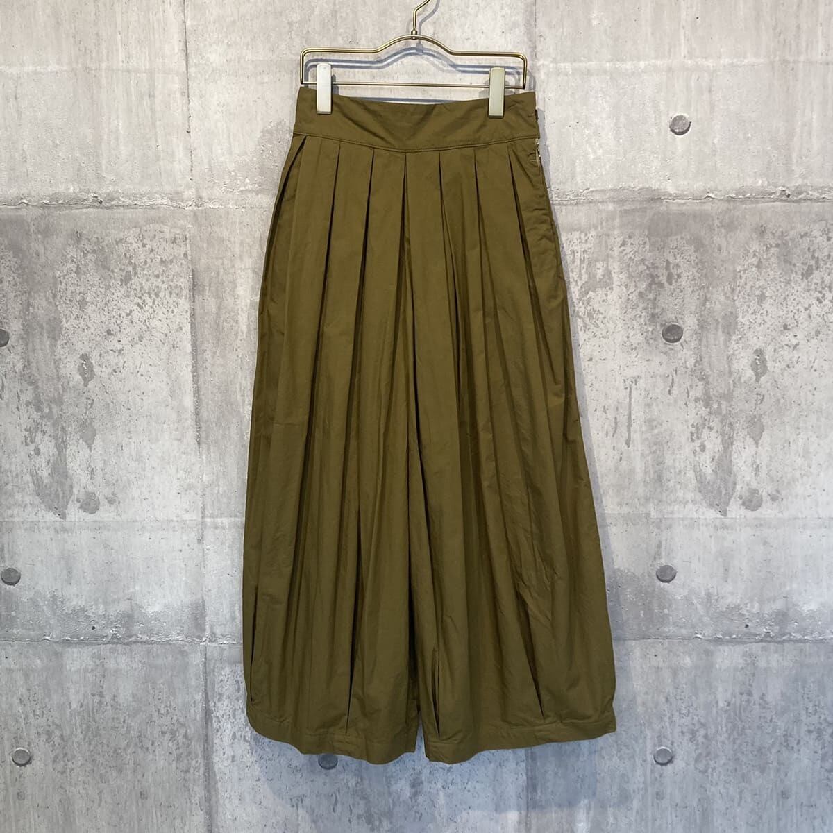 張りのあるツイル素材で、ウエストとスソのボックスプリーツがきれいなボリューム感を出しています。