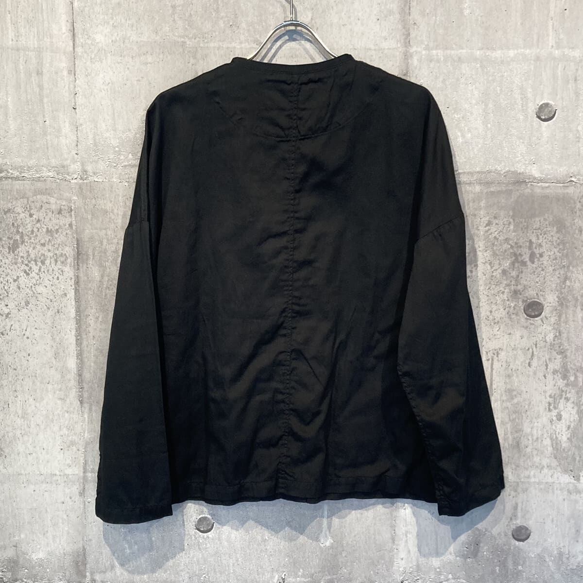 薄手のサテンのシャツ生地は肌触りも滑らかで上品な光沢感があり、洗いざらしの風合いはアンティークな雰囲気を出しています。