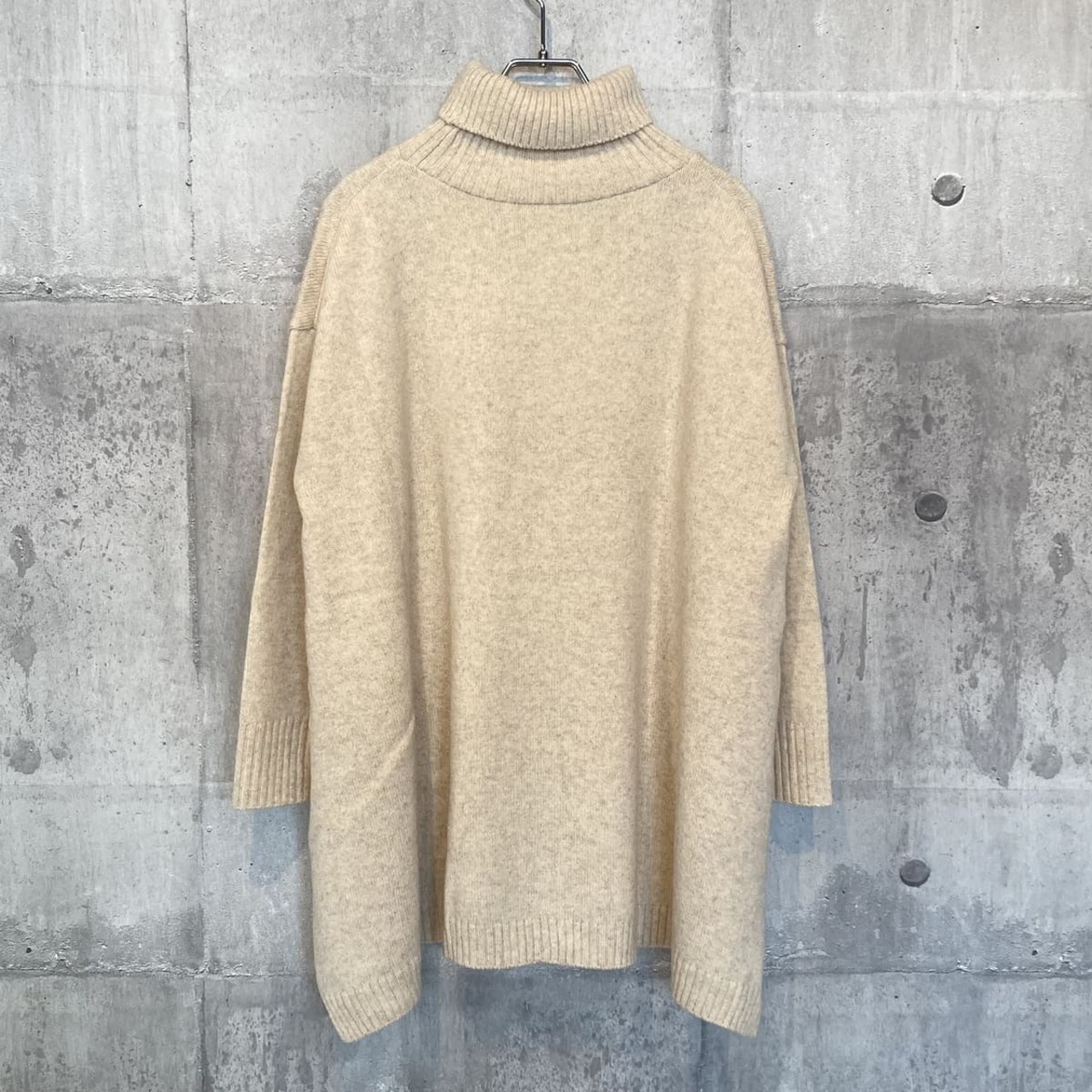 サイズ:フリー(着丈前:57.5cm着丈後:63.5cm身幅:59.5cm肩幅:57cm袖丈:41cmアームホール:20cm裾幅:75cmタートルの高さ:17.5cm)