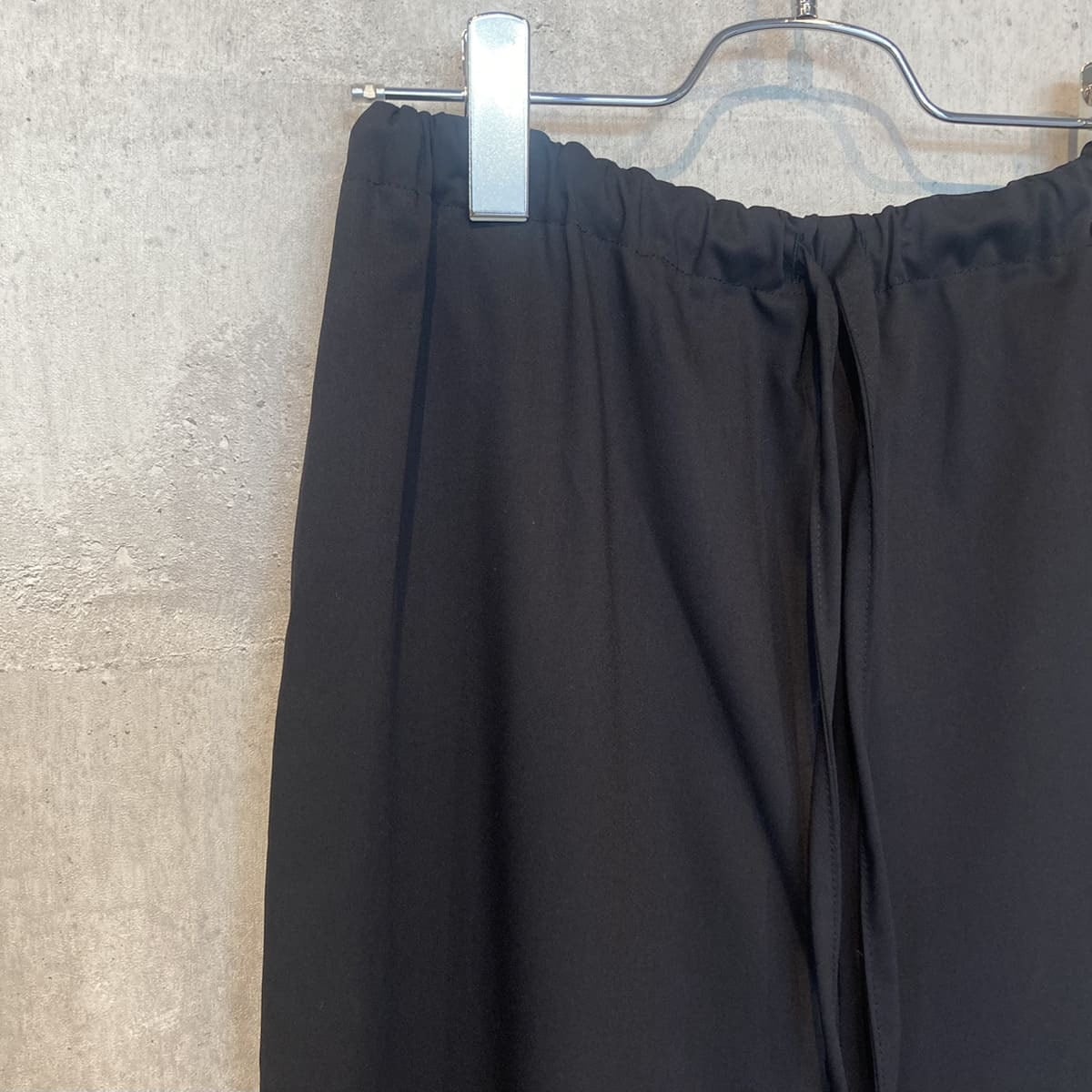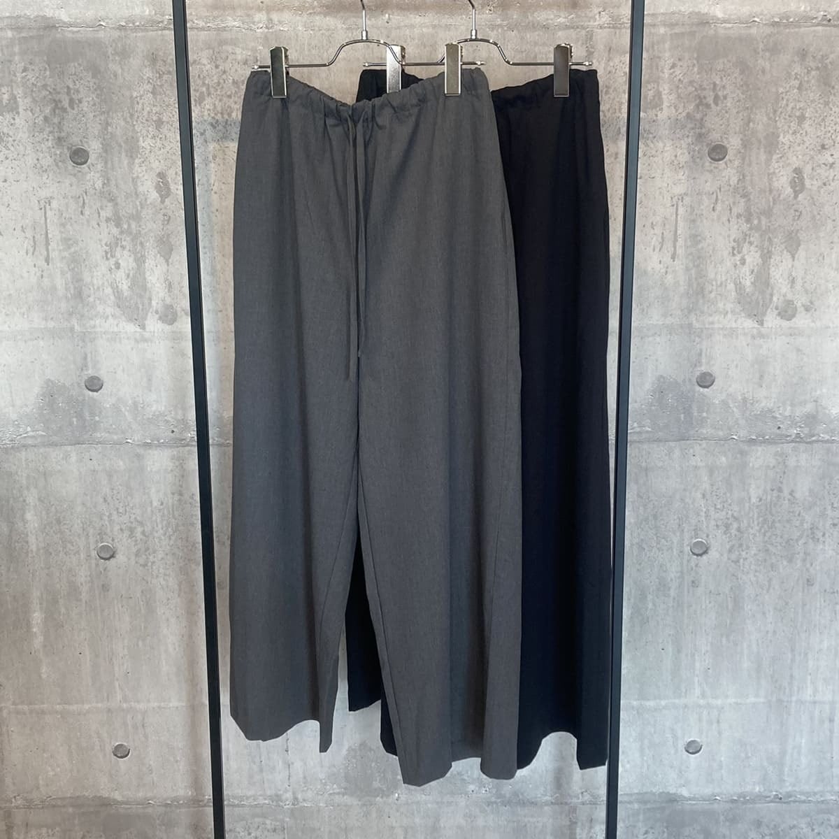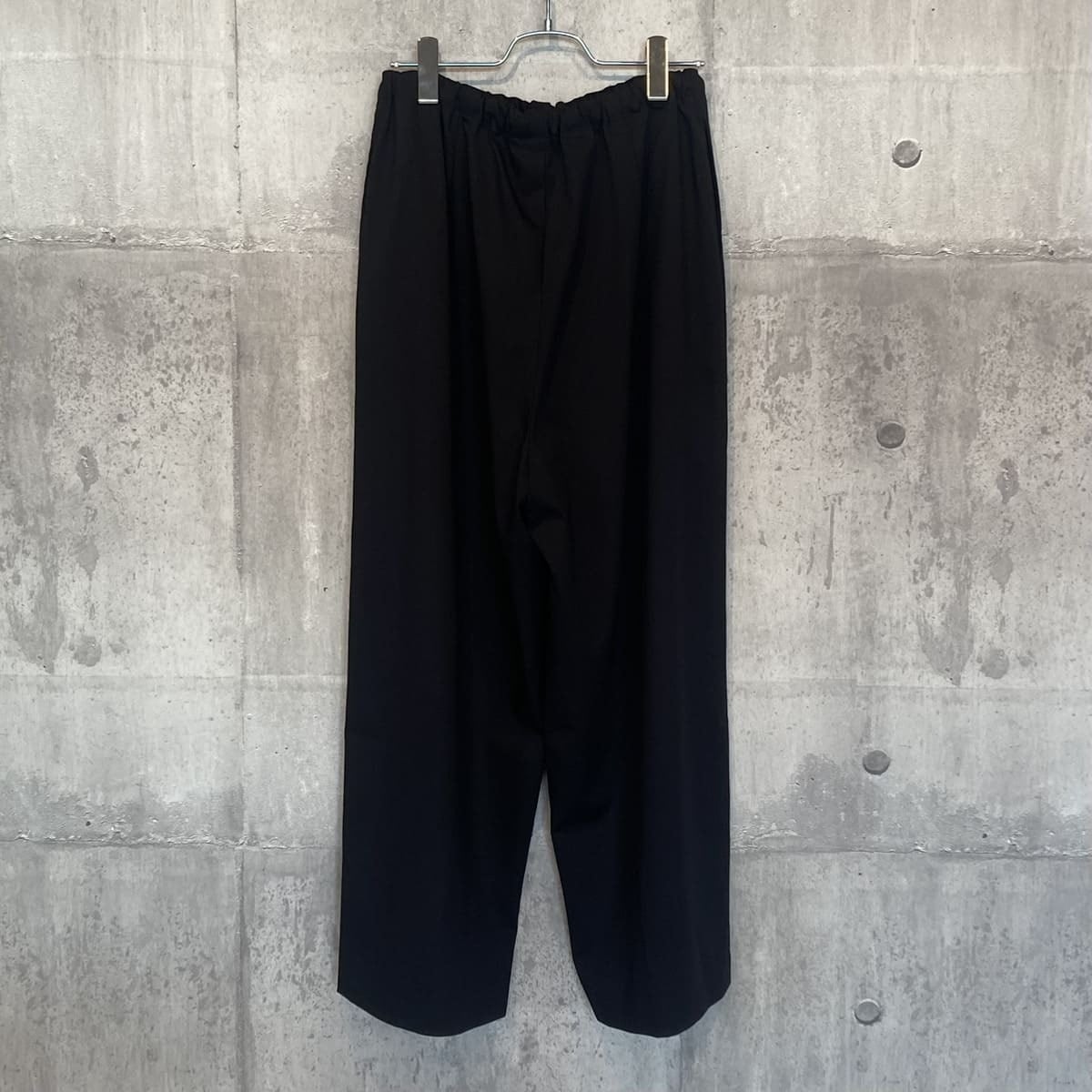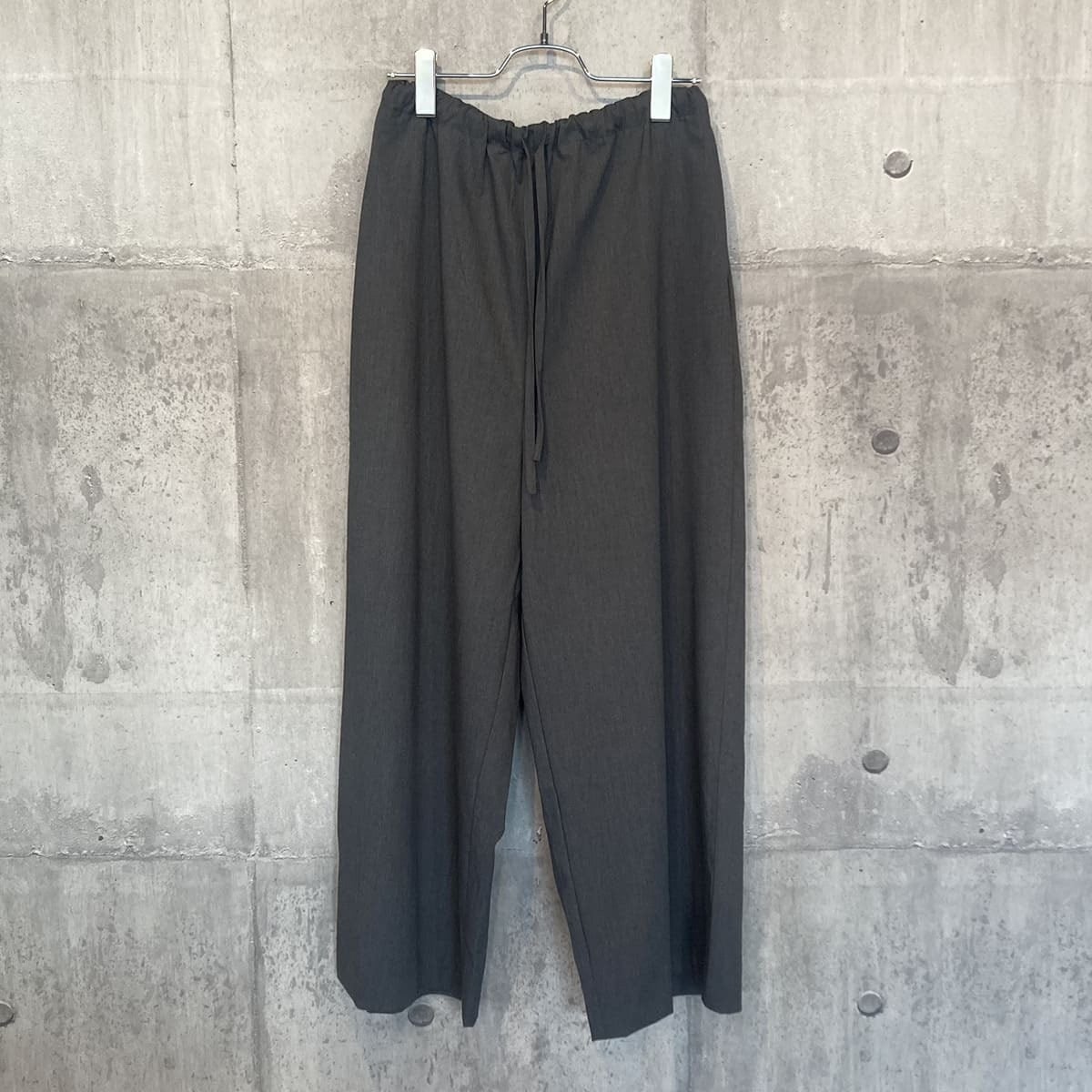 スラックスのようなすっきりとしたデザインで、フルレングスのストレートなシルエットが印象的なパンツです。ワイドなラインながらも落ち感があり、リラックスしたイージースタイルで着用いただけます。ウエストはゴムとドロストコードで調整できる仕様で、シンプルなデザインが全体をすっきりと見せ、どんなトップスとも自然に馴染みます。ベーシックながら存在感のある一着で、デイリーからきちんと見せたいシーンまで幅広く活躍。合わせるアイテム次第で、きちんと感のあるスタイルにもカジュアルな着こなしにも対応でき、長く愛用いただけます。サイドポケット付き。裏地なし。