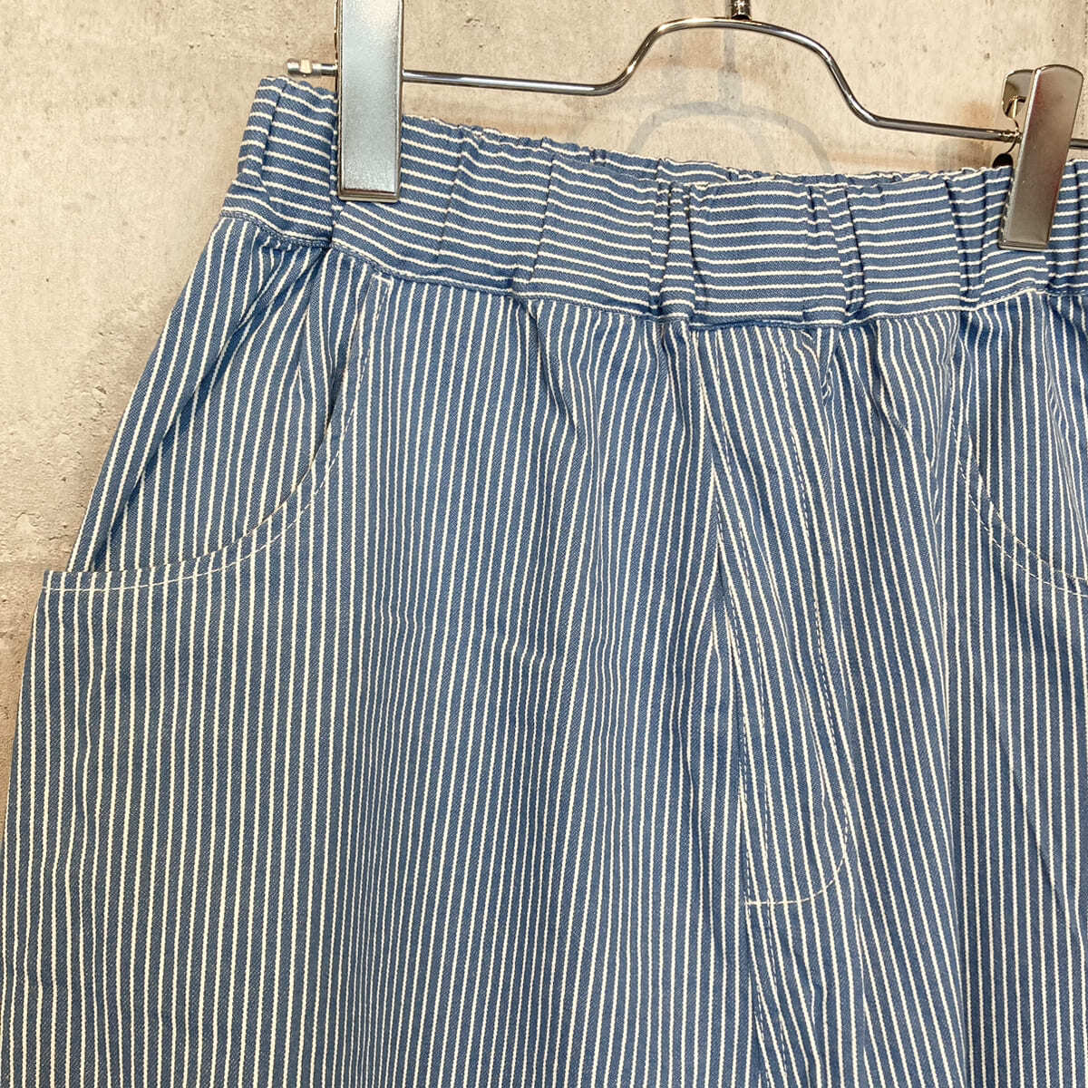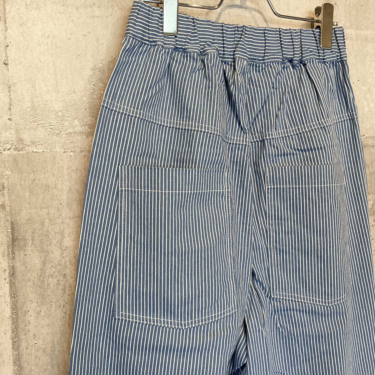 ワイドなストレートシルエットでカジュアルスタイルが楽しめる8ozカラーヒッコリー ノッポパンツです。NARUで人気のノッポシルエットでリラックス感のある着心地が特徴です。当時のワーカーを思い出させるようなヒッコリー柄が雰囲気抜群ながらも、ポップなカラーで旬顔な着こなしが楽しめます。低めに配置された後ろポケットがゆるっと感を演出します。シンプルなTシャツを合わせるだけで大人カジュアルな着こなしに仕上がります。