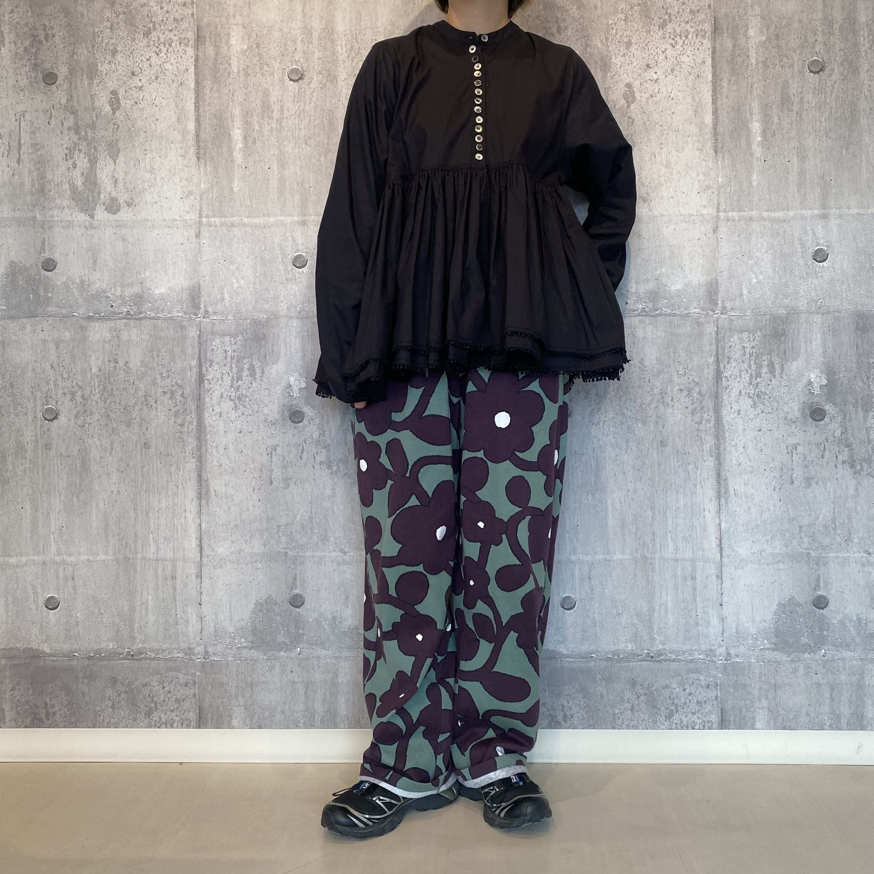 【dahl'ia】フラワープリントパンツ 花柄 ダリア [DPT-75ZR]ウエストゴム グリーン