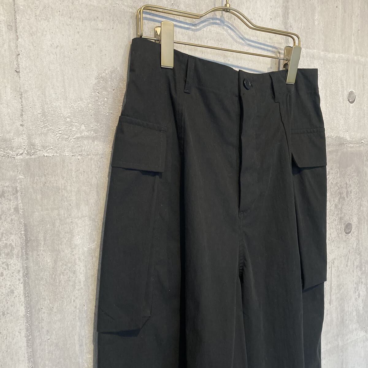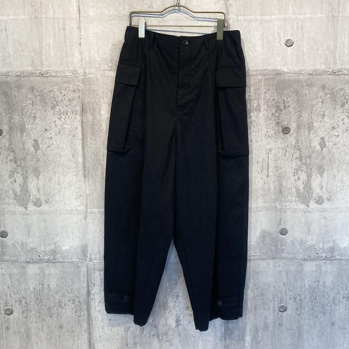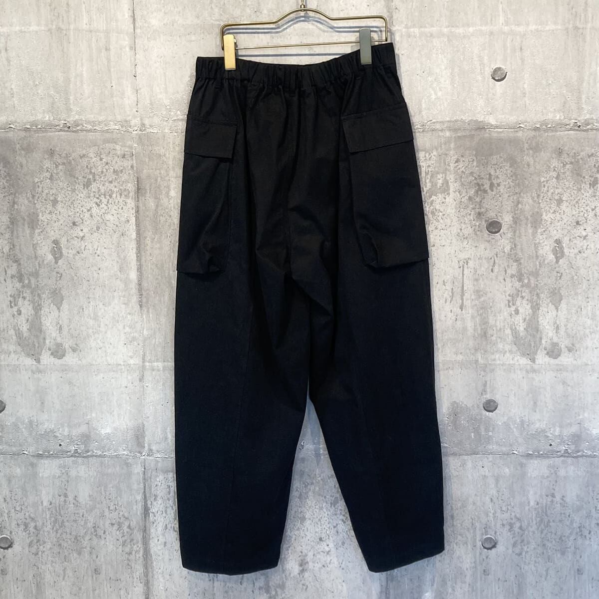 上品な生地の風合いをカジュアルなデザインに落とし込んだカーゴパンツ。中心を切り替えることで丸みを持たせたワイドシルエットです。裾にはタブが付いており、ボタンを留める位置によって絞ることが可能になっています。ウエストは後ろのみにゴムを通したイージー仕様。
