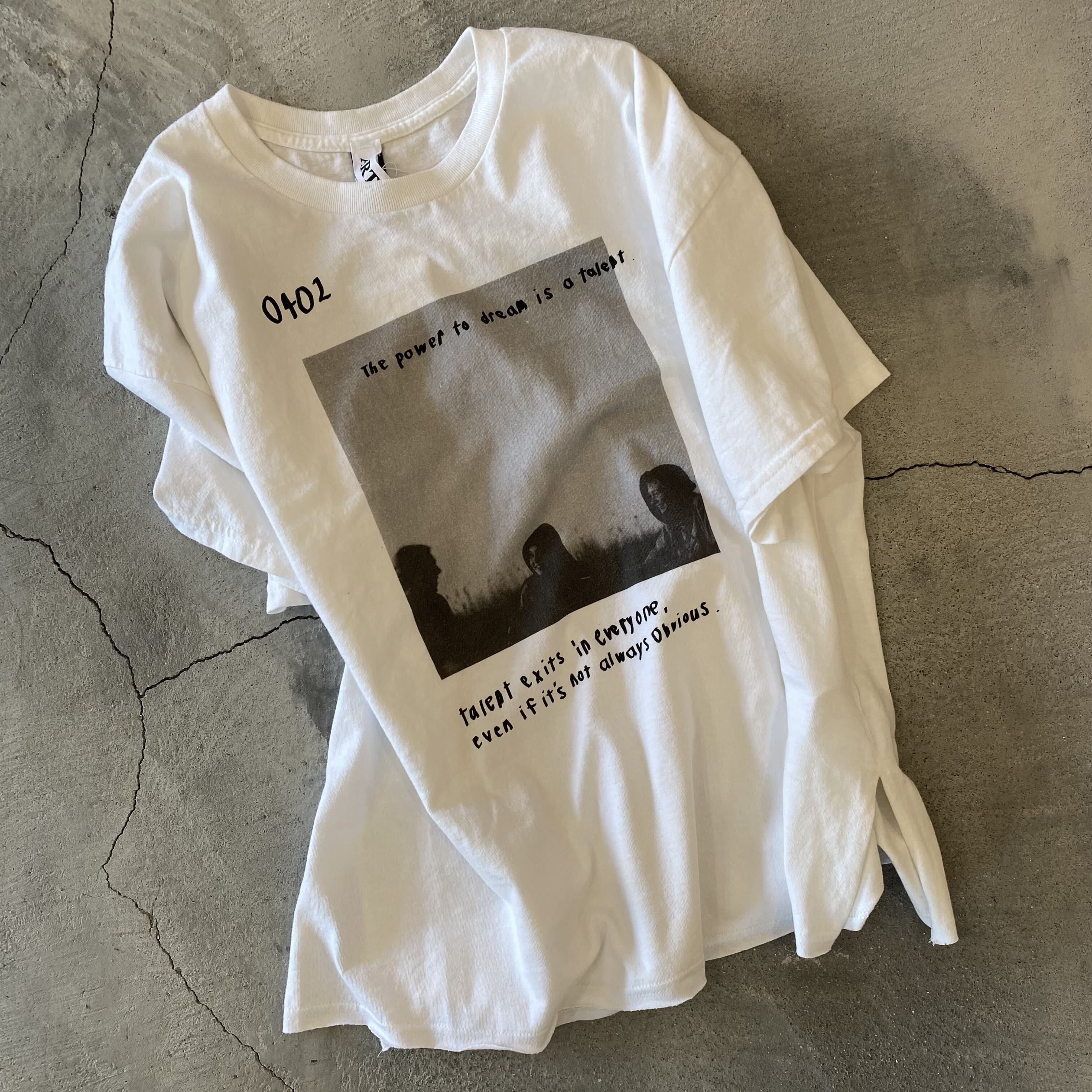 フロントにはスタイリングしやすく雰囲気の良いフォトプリントにメッセージロゴ入り、後面にも右肩辺りにワンポイントでステンシルプリントが施されております。