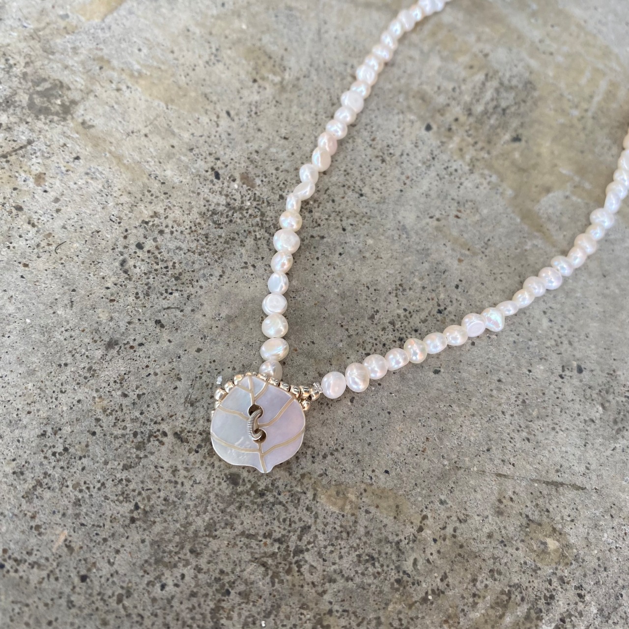 淡水パールのさりげない光沢が美しいネックレスです。