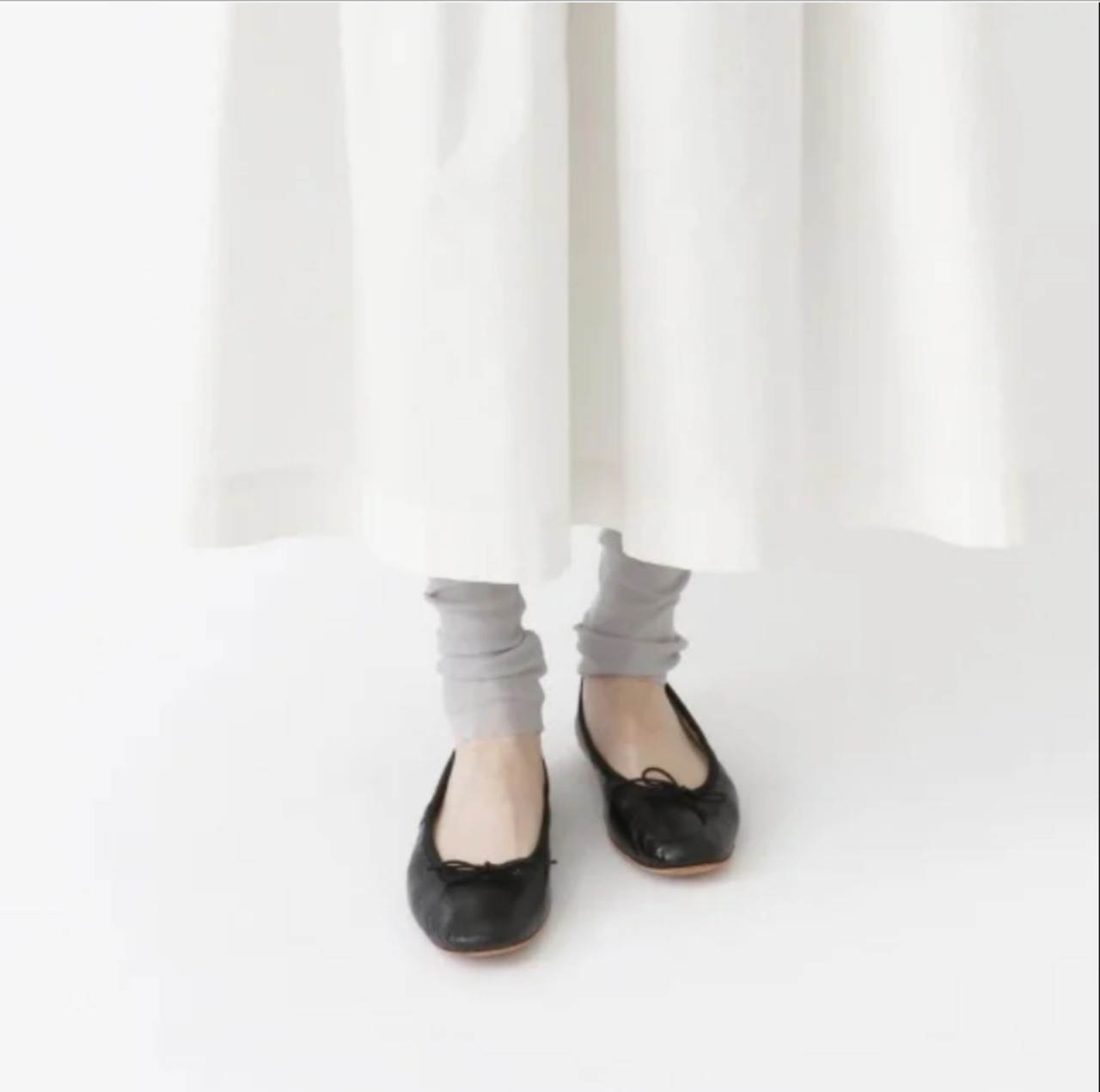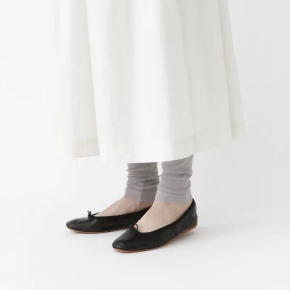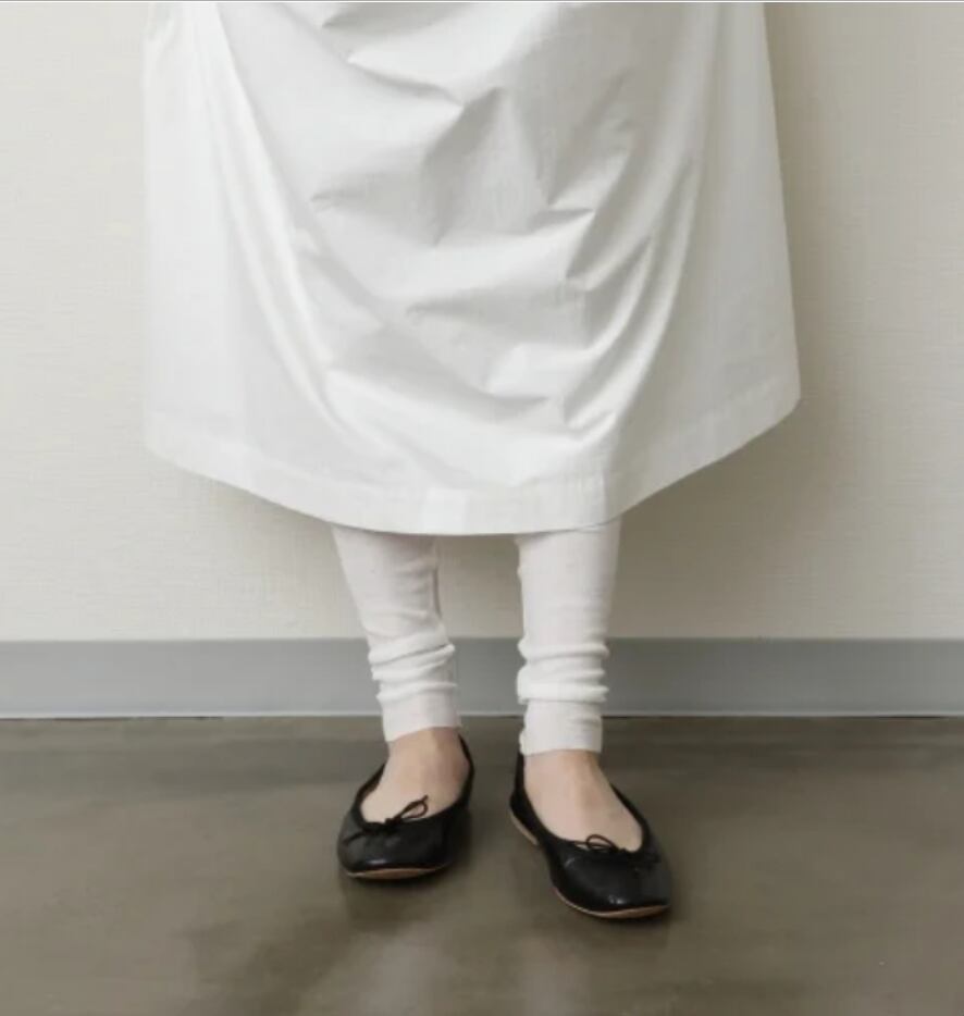 程よいフィット感で締め付け感がなくすっきりとしたシルエットで、足元はクシュっとさせることができる長めの丈になっております。インナーとしてはもちろん、ワンピースやスカートの裾からチラリと見せても素敵です。優しい履き心地で通年履いていただける1着です。