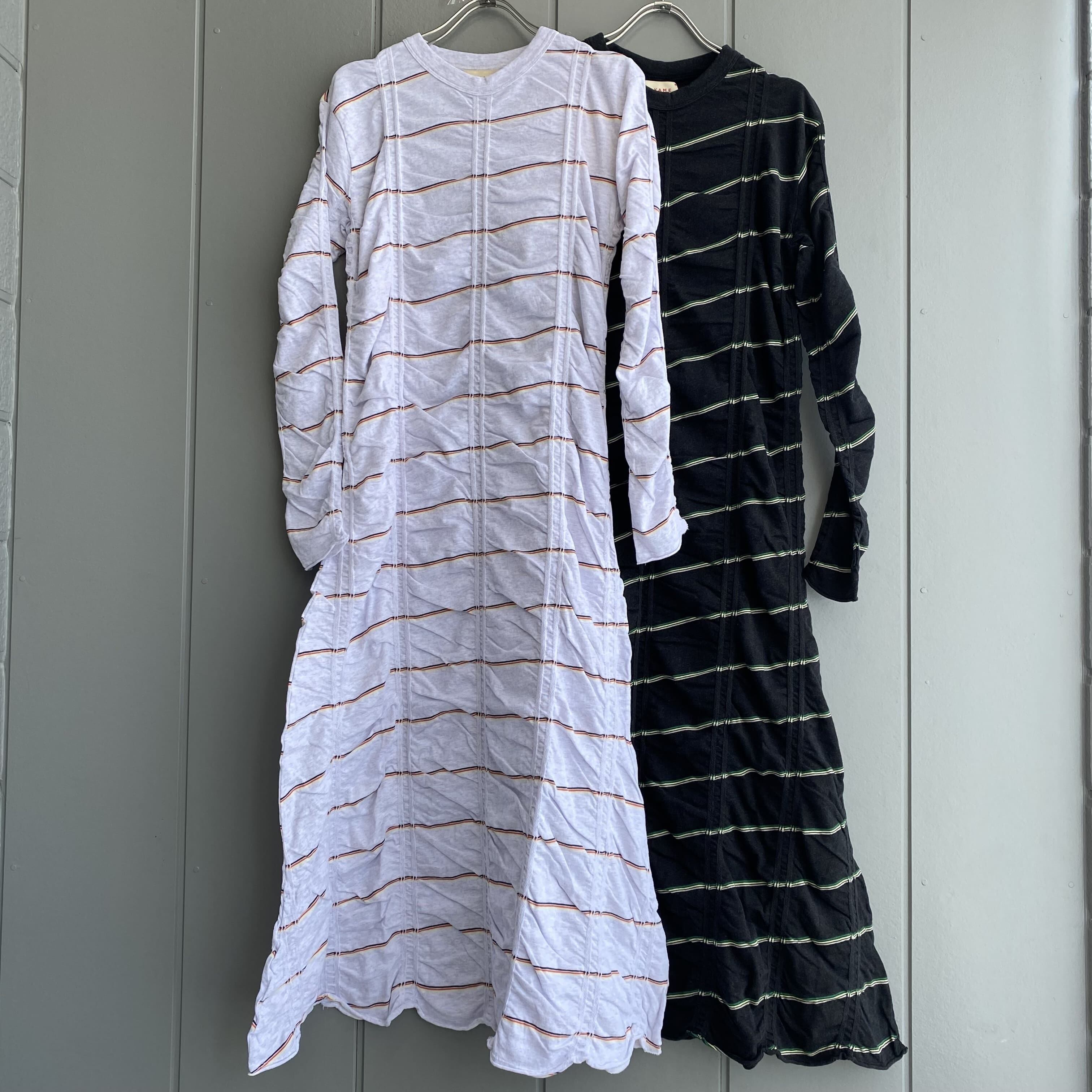 【MEYAME】TUCKED JACQUARD BORDER DRESS(タックジャガードボーダードレス)