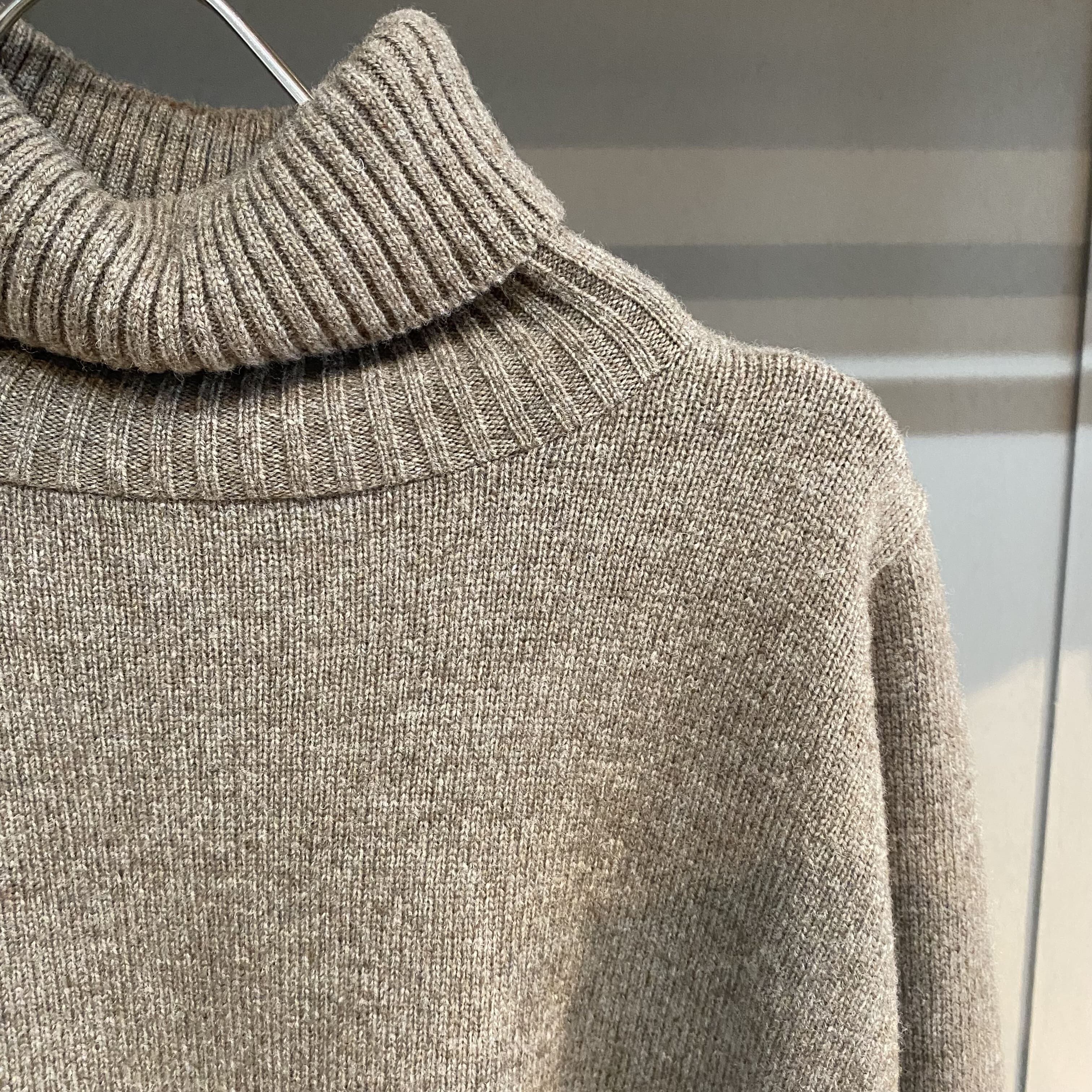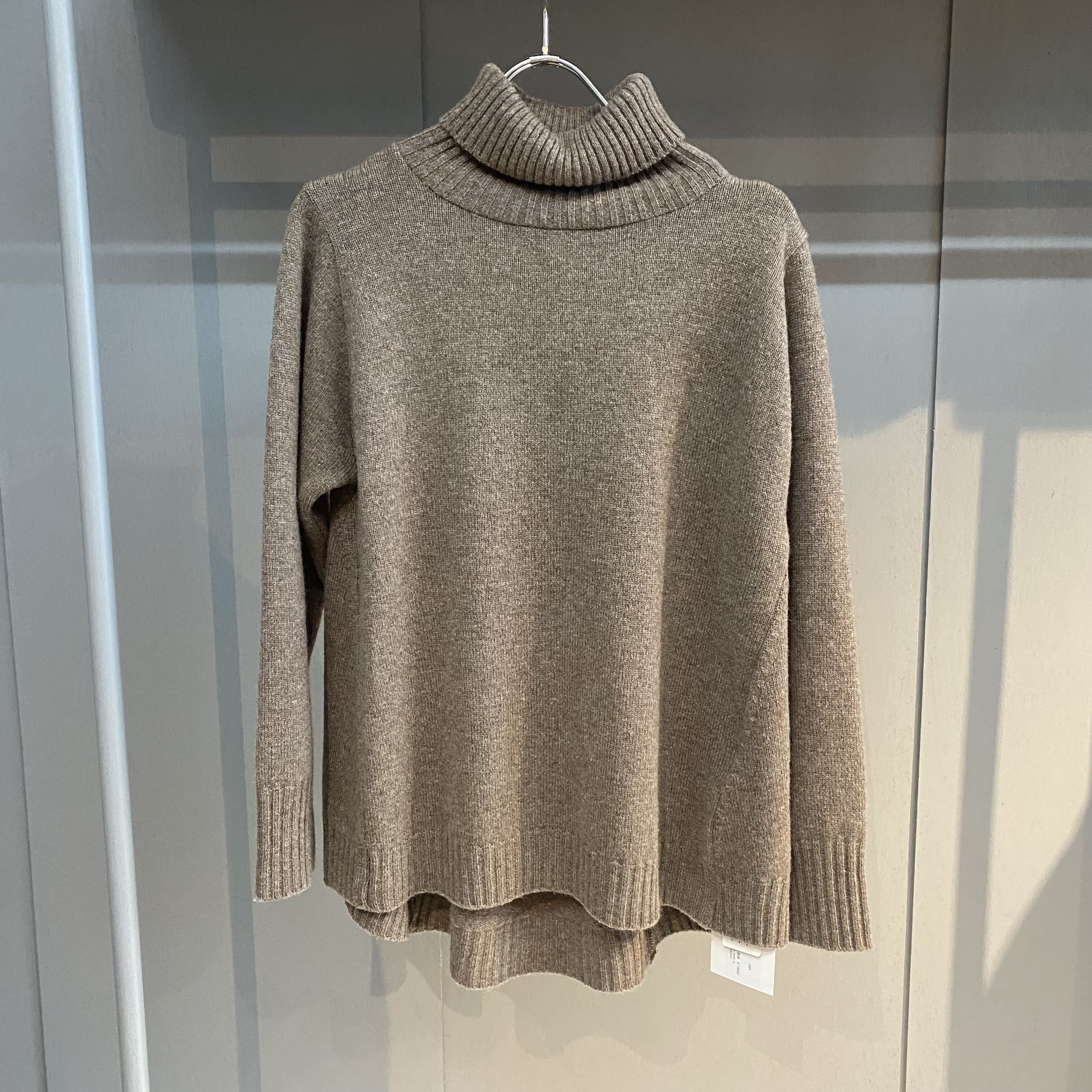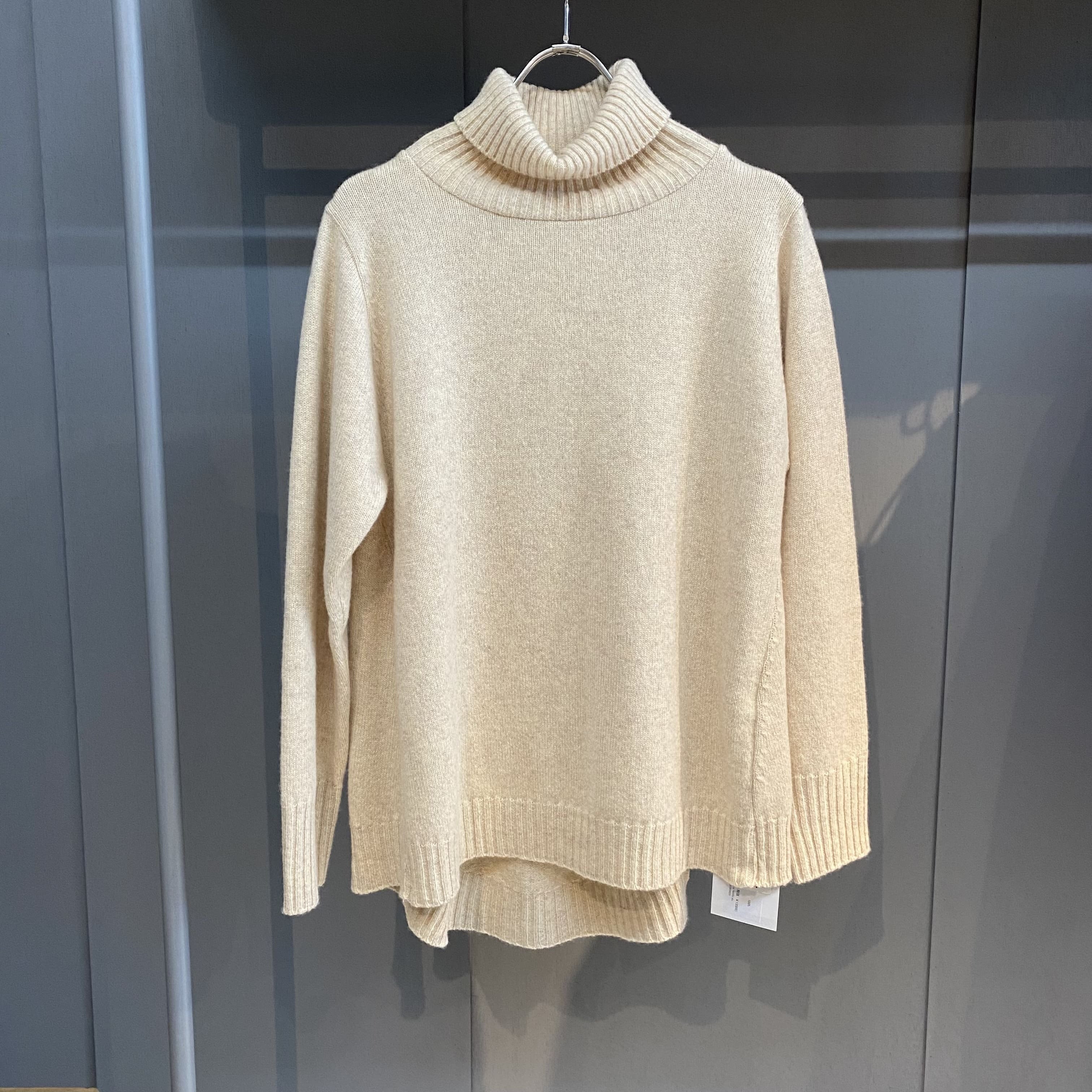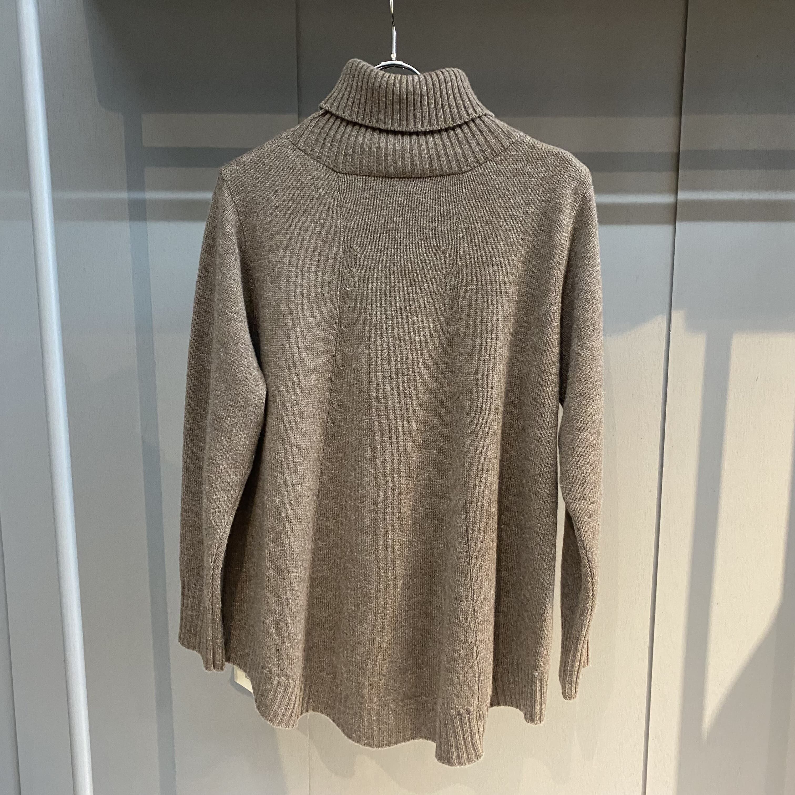 サイズ:フリー(着丈:前52cm/後62cm)、肩幅:36cm、身幅:48cm、袖丈:54.5cm、アームホール:21.5cm、裾幅:62cm、タートルネックの高さ:17.5cm。※こちらの商品はアイロンで仕上げを行った時点でのサイズ表記の為、ご家庭での洗濯後サイズが若干変化します。