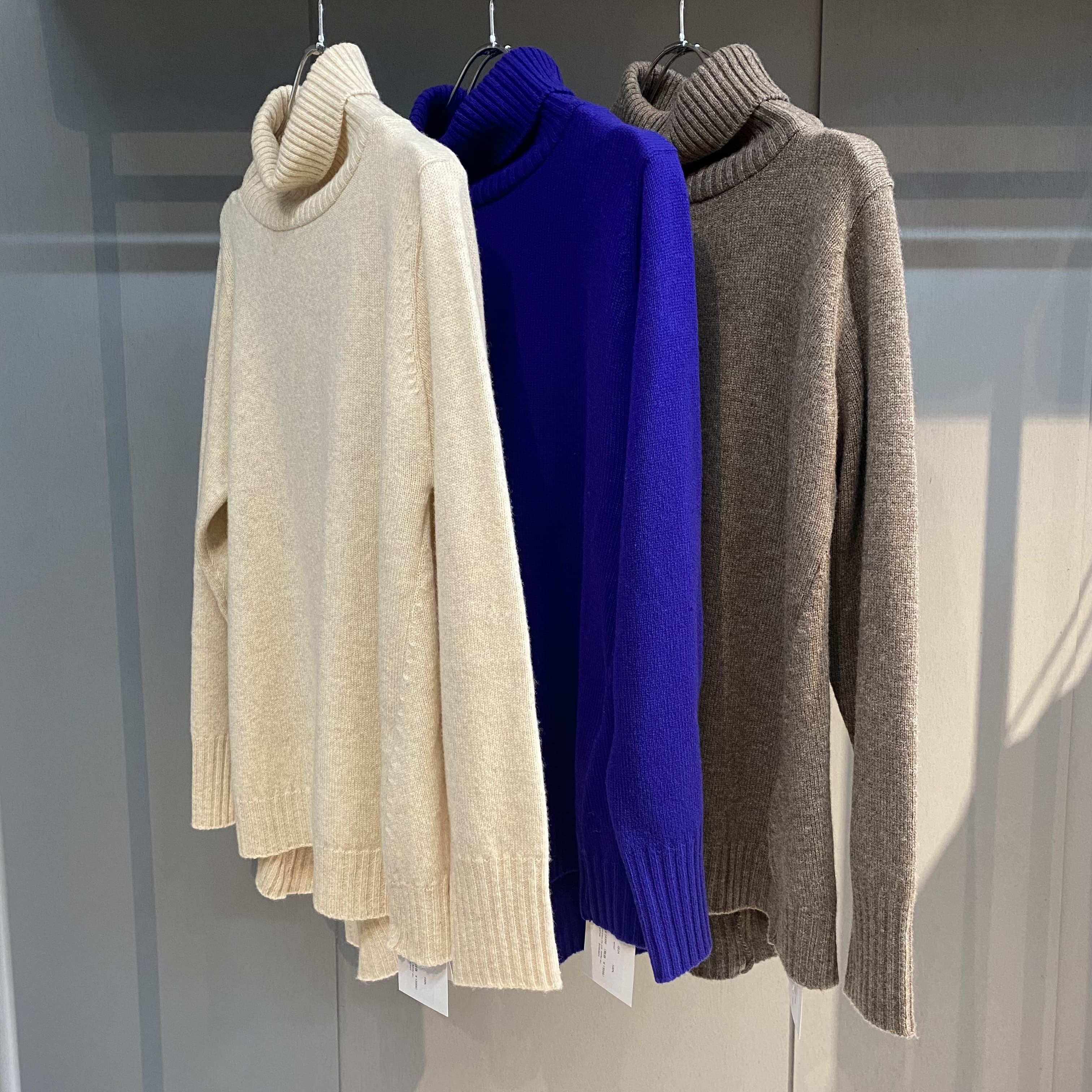 腰回りにゆとりのあるニットです。肌触りの滑らかなラムウールを使用し、裾に向かって広がりのあるAラインシルエットなので、ゆったりと着用いただけます。襟元と裾、袖口のリブが温かみのある印象に、後ろ下がりのヘムラインで腰回りもカバーできます。シンプルで幅広いボトムスに合わせやすい、デイリー使いにぴったりな1枚です。