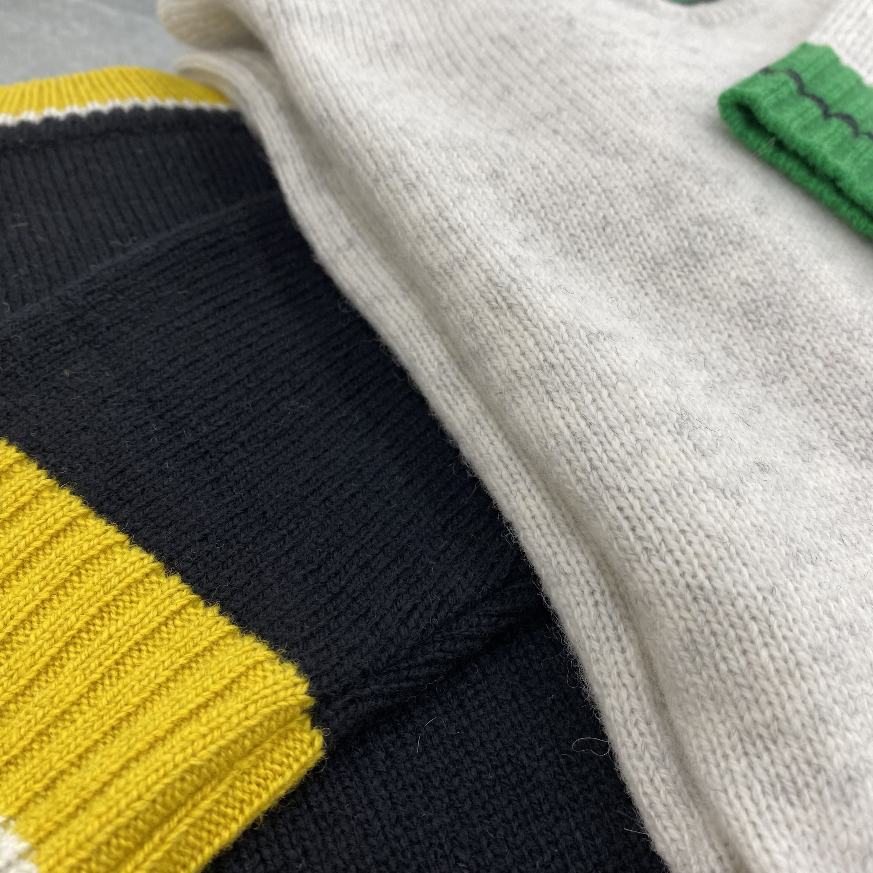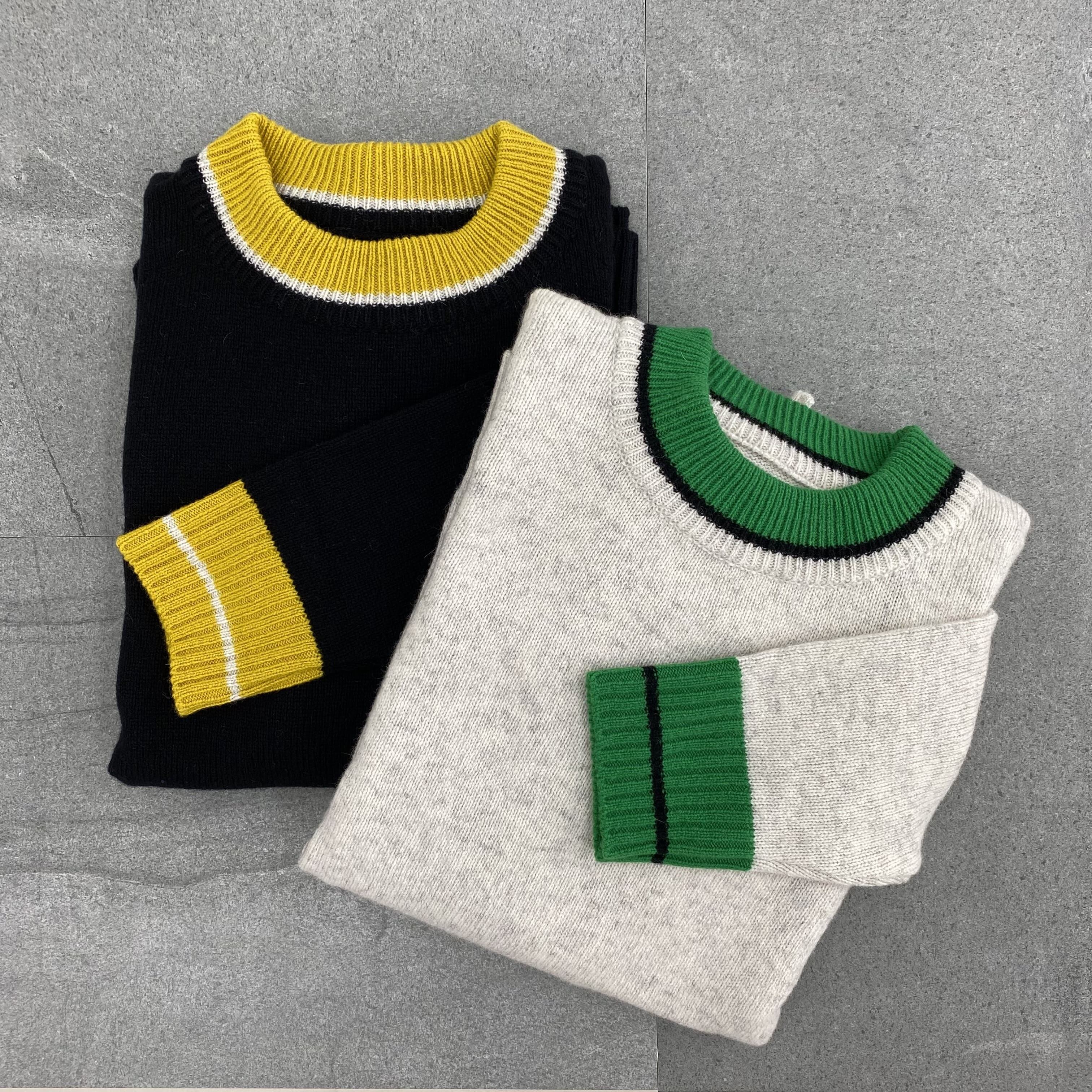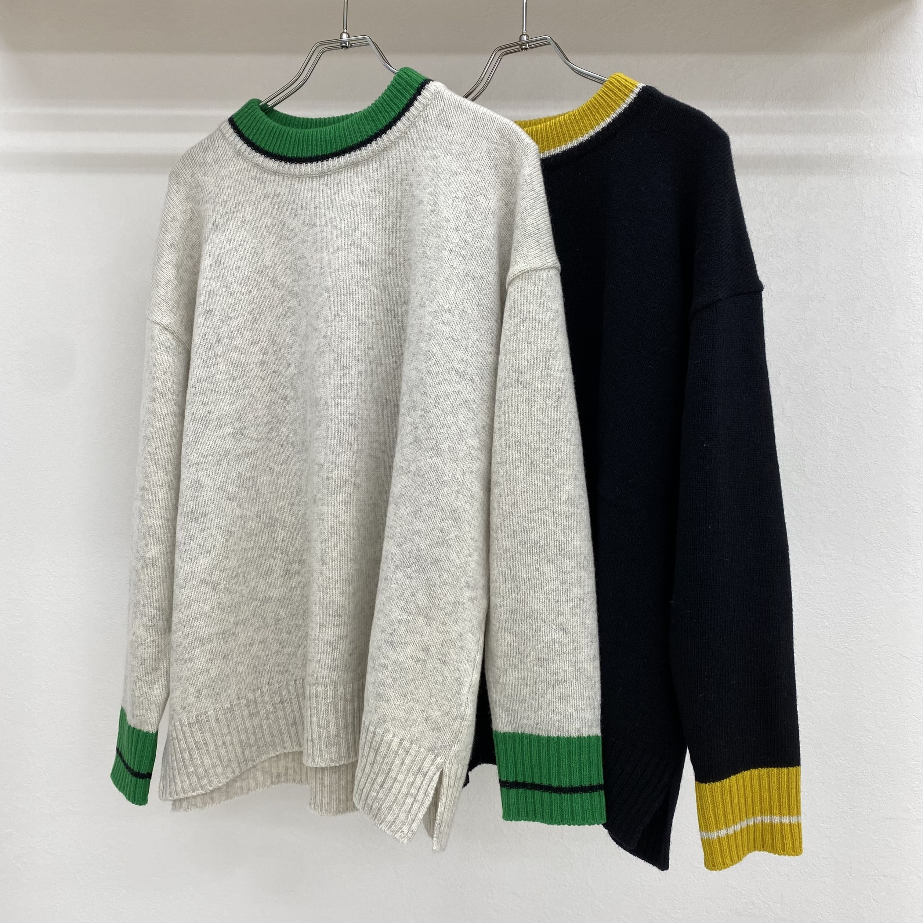 配色デザインが目を惹くLUNA バイカラークルーネックニットが入荷しました。ゆったりとしたシルエットでシャツなどともレイヤードしやすいニットプルオーバーです。パキっとしたビタミンカラーの配色でシンプルの中にもアクセントを演出します。配色の中にも細いラインを入れたカジュアルなデザインです。1枚で着るのはもちろん、シャツなどをレイヤードさせてもすっきりとご着用いただけます。ウールの保温性とカシミヤの柔らかさを兼ね備えた高品質な暖か素材で、チクチク感が少なく敏感なお肌の方にもご使用していただきやすいニットです。(画像モデル身長150cm)