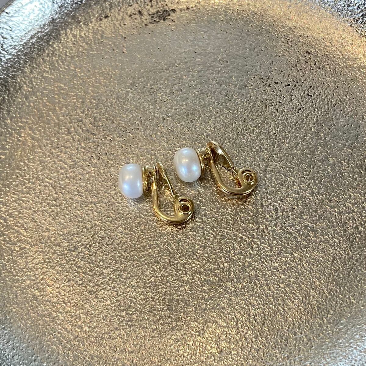 主役のパール部分はモチ型やボタン型と呼ばれる、高さを抑えたナチュラルなフォルムの淡水パール。展開中の貝パールとはまた異なる、まろやかで瑞々しい艶と輝きをお楽しみいただけます◎Oucaでは定番のクリップタイプの金具を用いた、8mmサイズの淡水パールを用いたイヤリング。大き過ぎず小さ過ぎず、定番と言われるベーシックな8mmは一つあると万能なサイズ感。淡水パールそのものを楽しんでいただけるようごくシンプルに仕上げたイヤリングは華やかなシーンはもちろん、カジュアルなデイリーコーデのアクセントにも最適です◎パールの大きさに合わせてパールを支えるお皿部分をオリジナルで制作しイヤリング金具のアーム部分が見えにくいように溶接加工を施すなど定番のアイテムだからこそ、細部にまでこだわりました。金具はクリップタイプです。