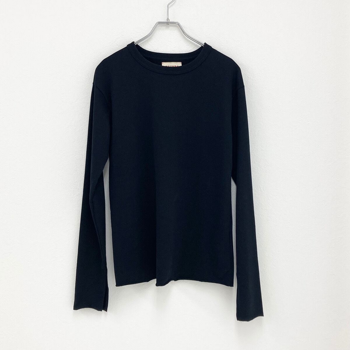 ”ロンTとスエットの間の1年中活躍するアイテムを作りたい”とずっと考えていて、やっと理想の素材が完成しました。表に少しだけ起毛のような加工を施して、上品な光沢と滑らかな質感を実現。内側は柔らかでずっと着ていたくなる肌触りです。シルエットは緩やかな A-LINE でバランスの取りやすいシルエット。やや詰まったネックがカジュアルになりすぎないポイント。袖口にスリットが入っていて、そのままはもちろん、折り返して着ることでまた違ったバランスと印象になります。袖口と裾はカットオフにしているので少しクルッとします。色違いで揃えたくなるアイテムです。