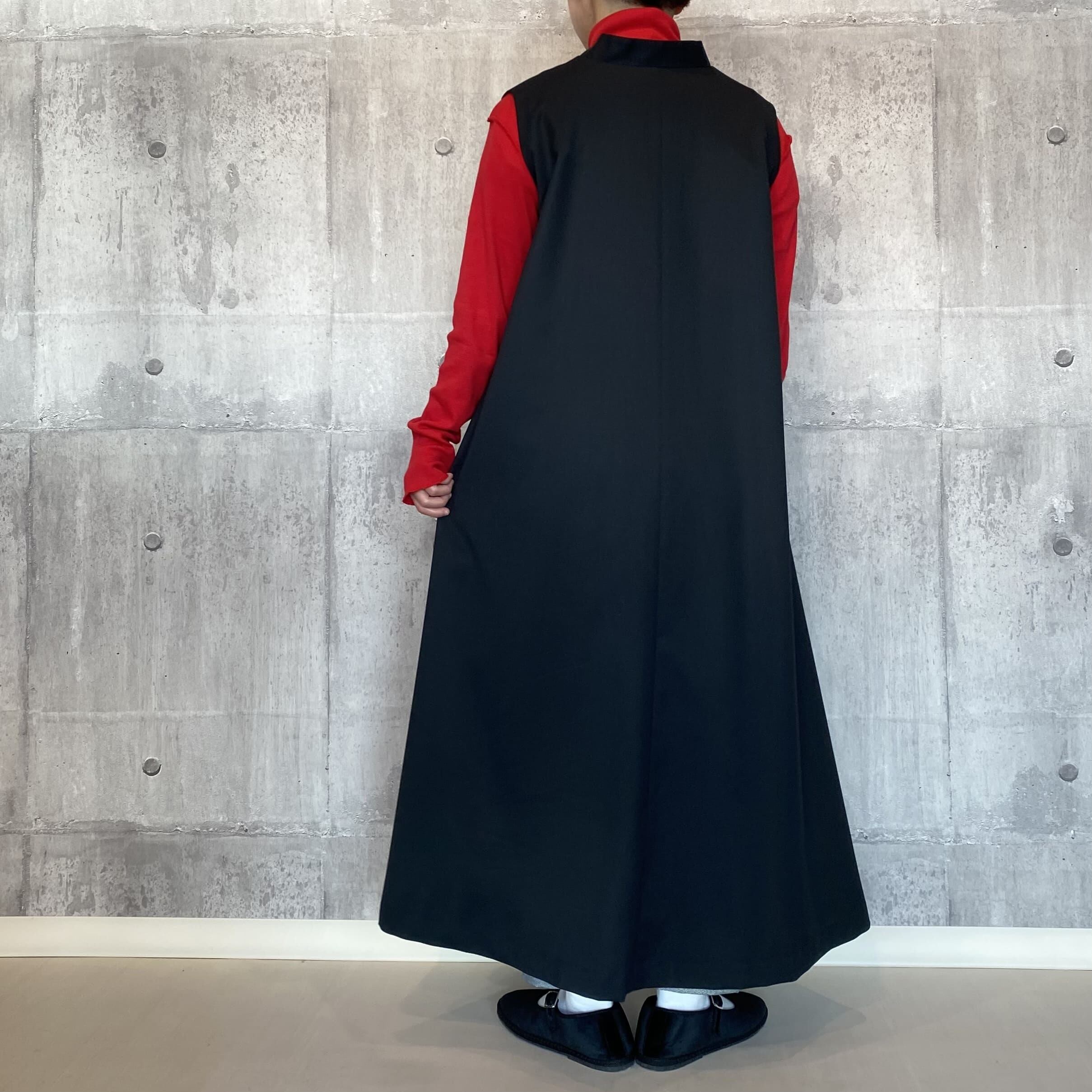 フロントボタンのシックなデザインで、ロングワンピースとしてもロングベストとしても着こなせる1枚です。小さめの襟のテーラードを変形させ裾にかけて上品に広がるシルエットが魅力的。シャツワンピースやパンツを合わせたコーディネートでレイヤードを楽しむことのできる幅広い着こなしを表現します。ウール混なので暖かくアウターも羽織りやすいおすすめのワンピースです。(画像モデル身長:150cm)
