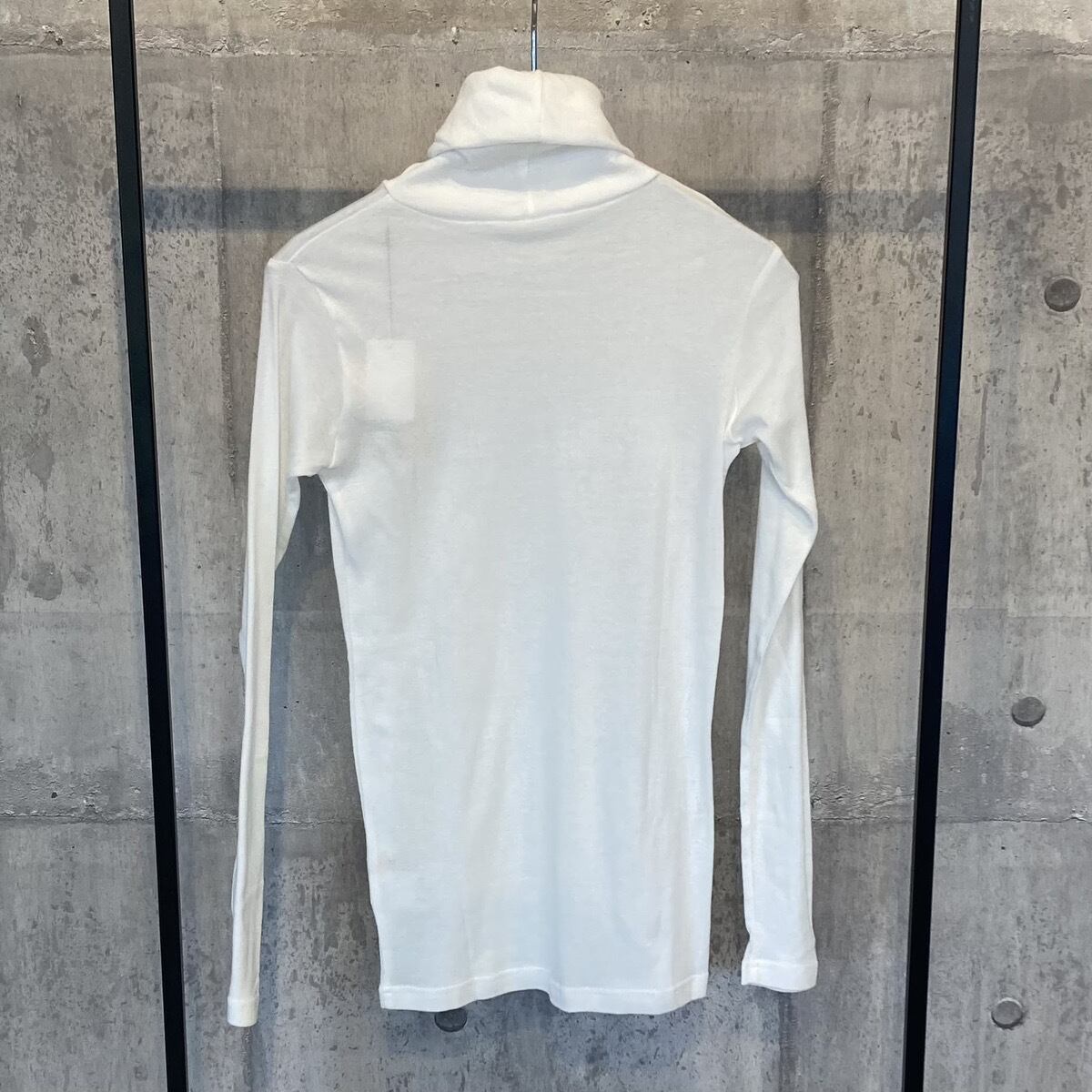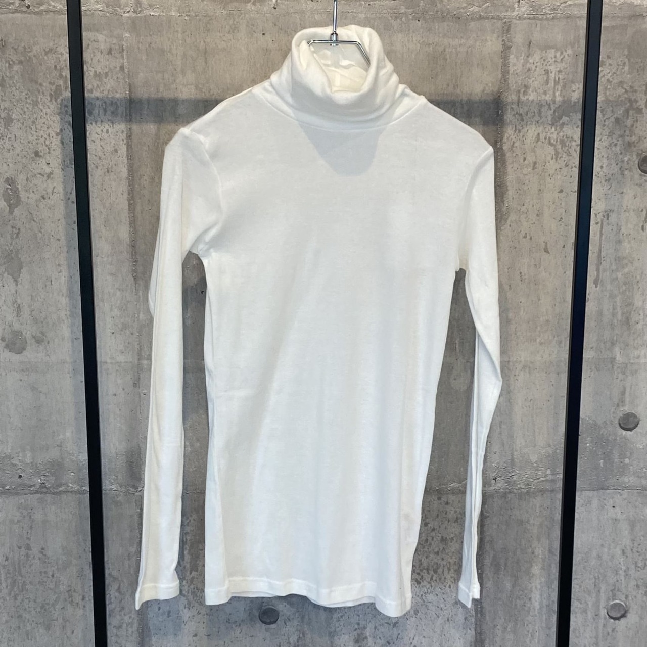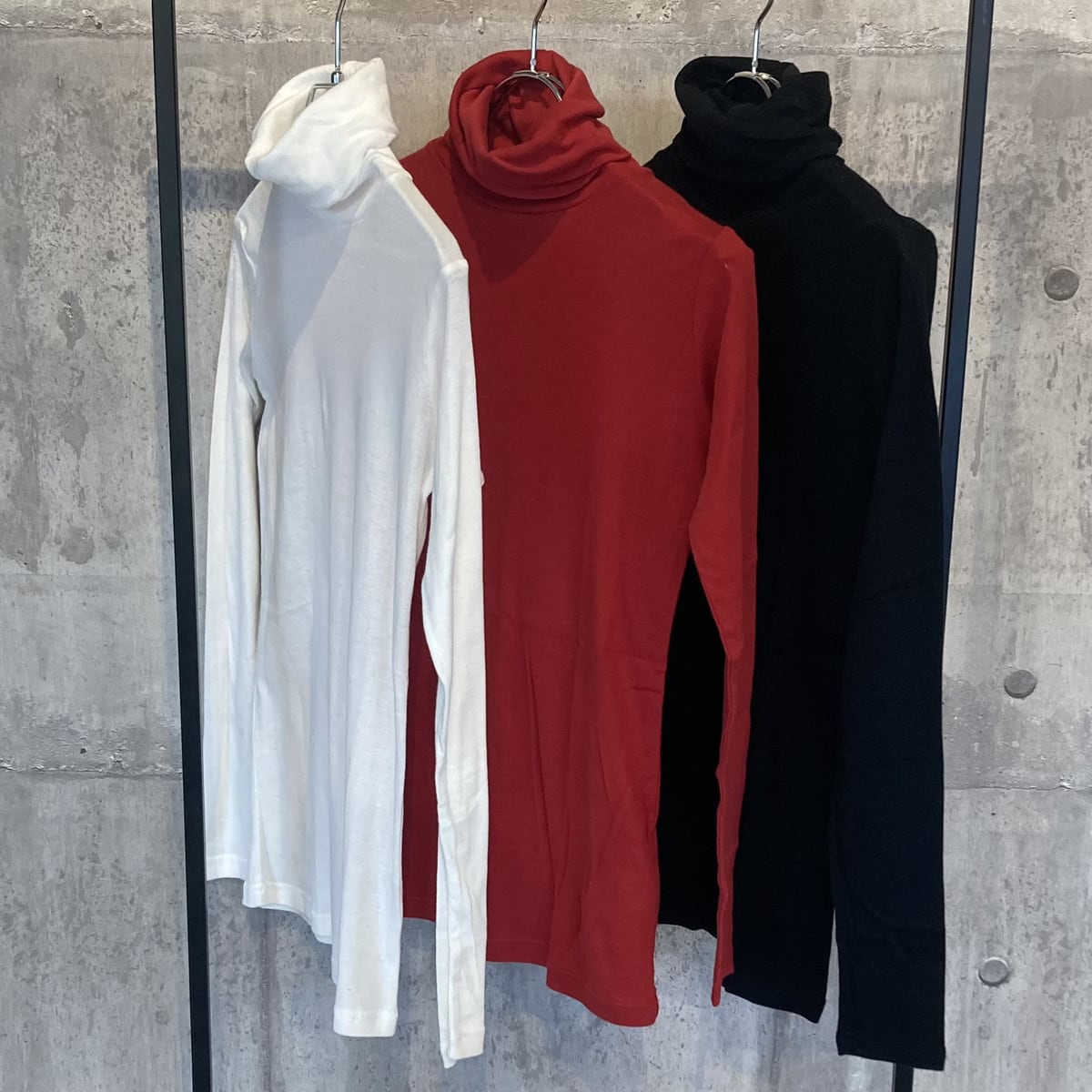 コットン100%のしっとりとしたフライス生地が身体を包み込んでくれる極上のやわらかさです。非常に細い糸を強度と伸縮性のある生地にするために、技術力の高い和歌山の工場で丁寧に編みたてたNARUのオリジナル素材のタートルTです。タートルネックはねじれたボリュームのあるデザインになっており、小顔に見せてくれます。着丈や袖丈は長めで、インナーとして着用しているときに裾から出てくる心配もなく安心して着用いただけます。