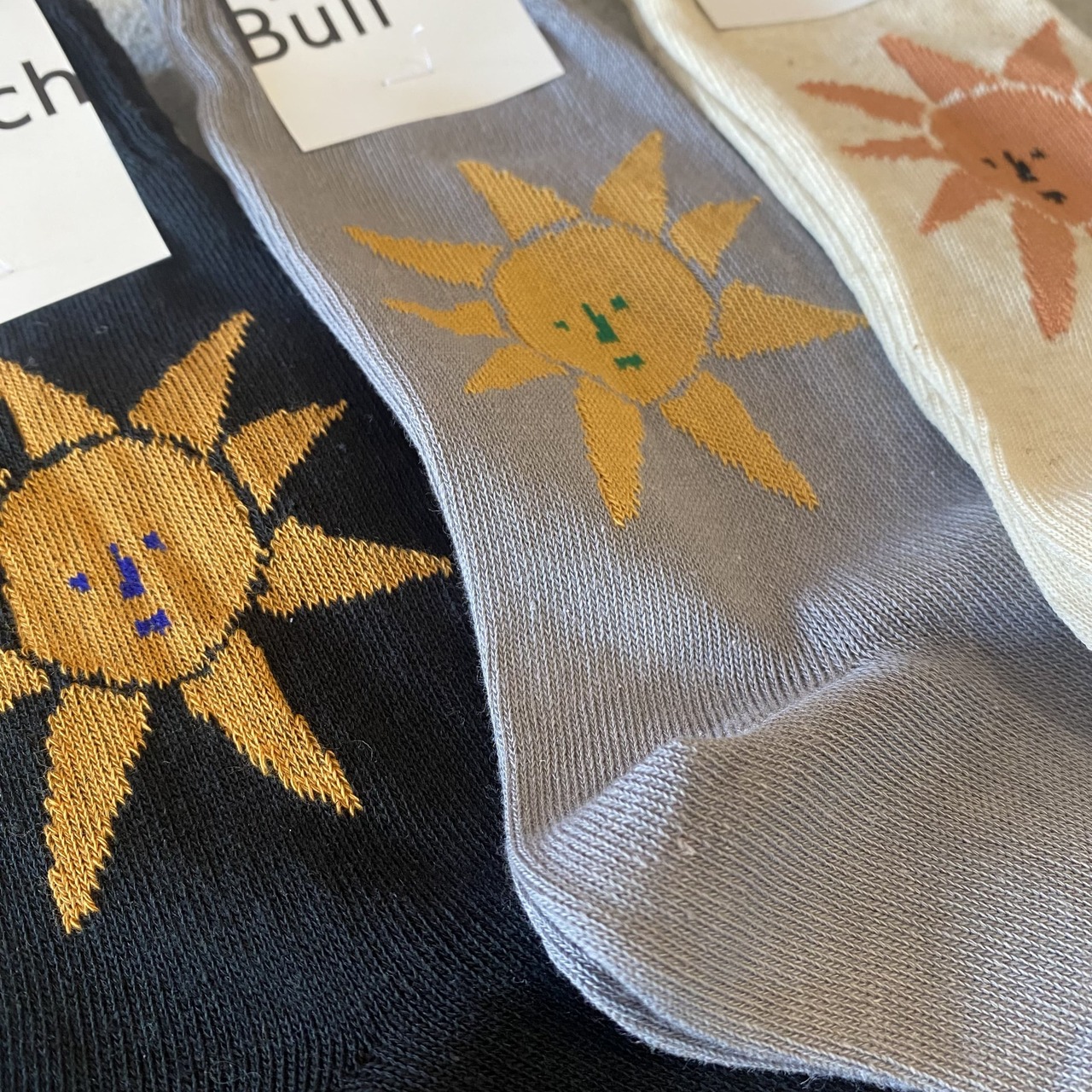 コットンリネン素材とゆるい弾性糸を使用したナチュラルで柔らかな履き心地が魅力の靴下です。自然な風合いと通気性の良さが特徴で、足元を快適に保ちます。デザインは太陽をイメージした柄と、もう片方には『The Sun』のロゴが入ったキャッチーなソックスです。カジュアルなスタイルからちょっとしたお出かけまで幅広く活躍します。柔らかい素材感が足に優しくフィットし、一日中履いても疲れにくいのが嬉しいポイントです。